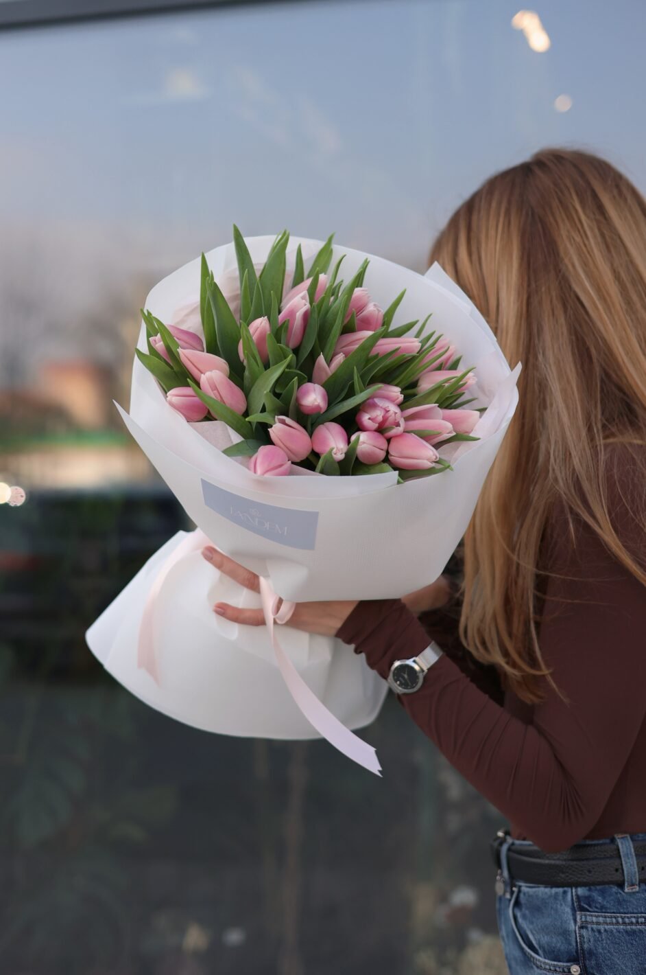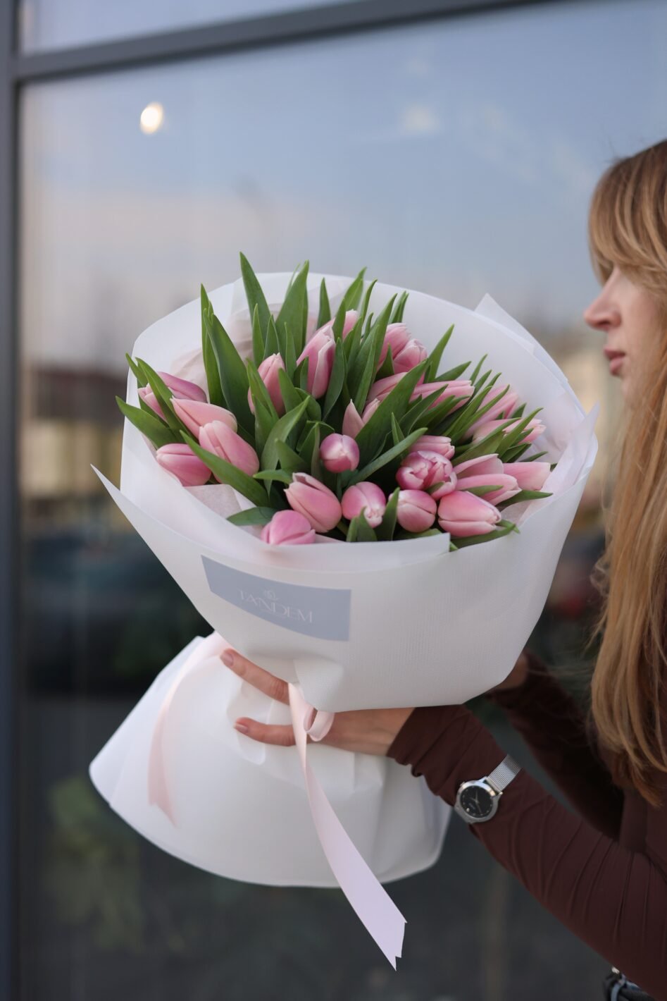 25 ніжно-рожевих тюльпанів