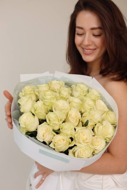 Букет зі 51 біло-рожевої троянди Мондіаль