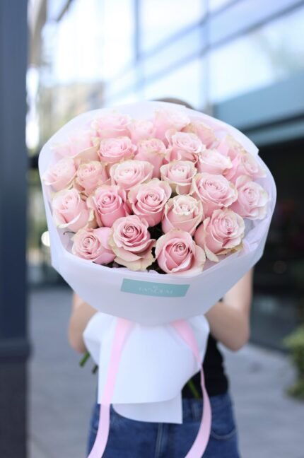 Монобукет з 25 троянд Пінк Мондіаль