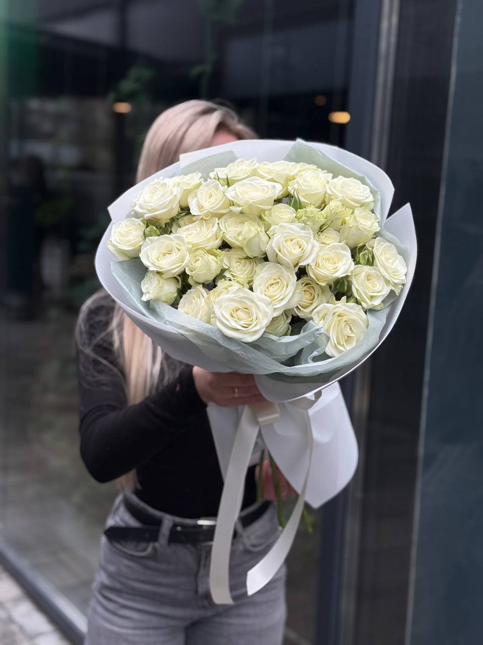 Букет з білих кущових троянд