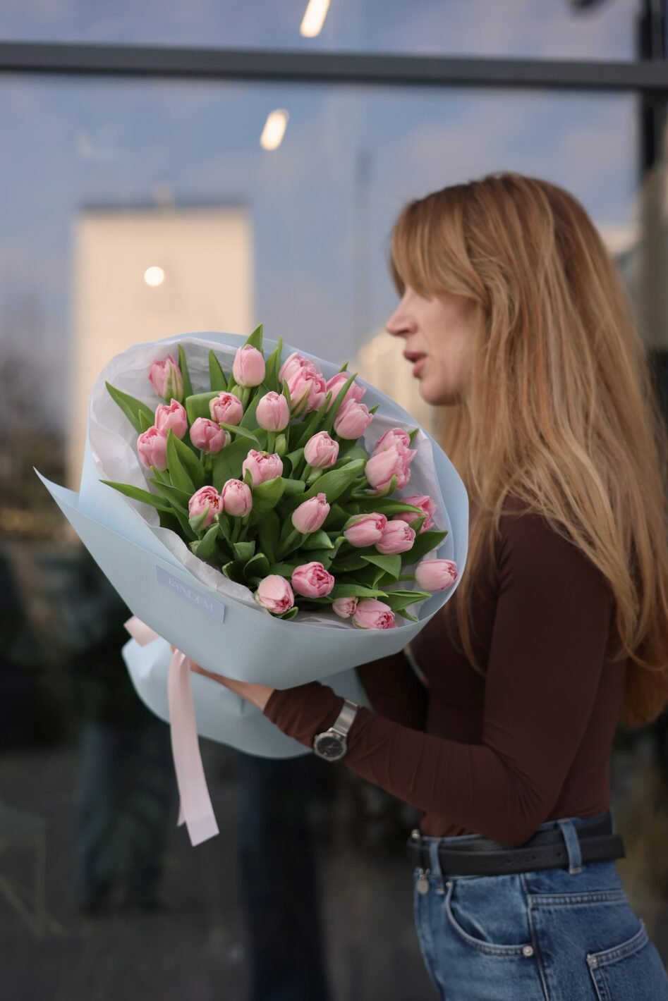 25 рожевих піоновидних тюльпанів
