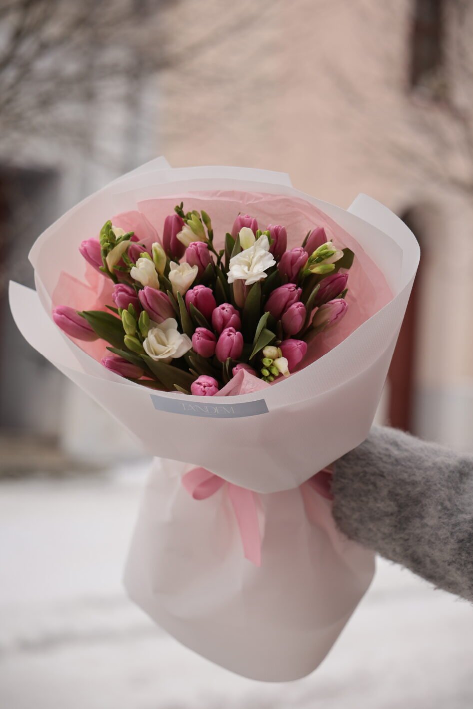 We will do our best to create a bouquet that is as similar as possible to the photo from which the order was made. The compositions are assembled from the best flowers that we have in stock at the time of the order. We reserve the right to make certain substitutions in both the components and the packaging of the bouquet, but we must maintain the general appearance, size, shape of the bouquet and its cost.