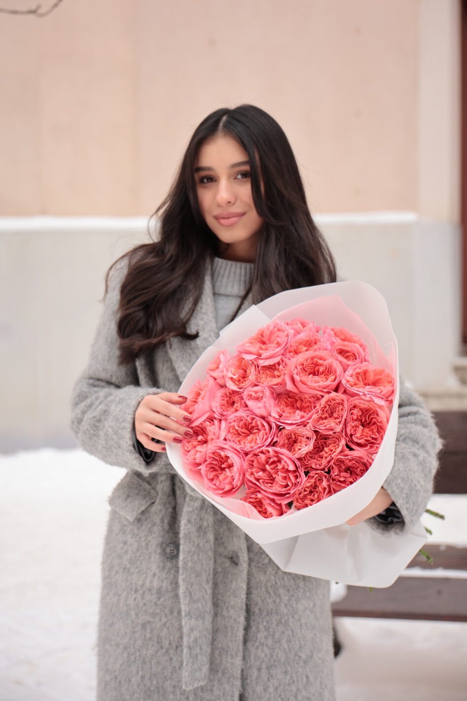 Букет з 25 піоновидних троянд Кенді