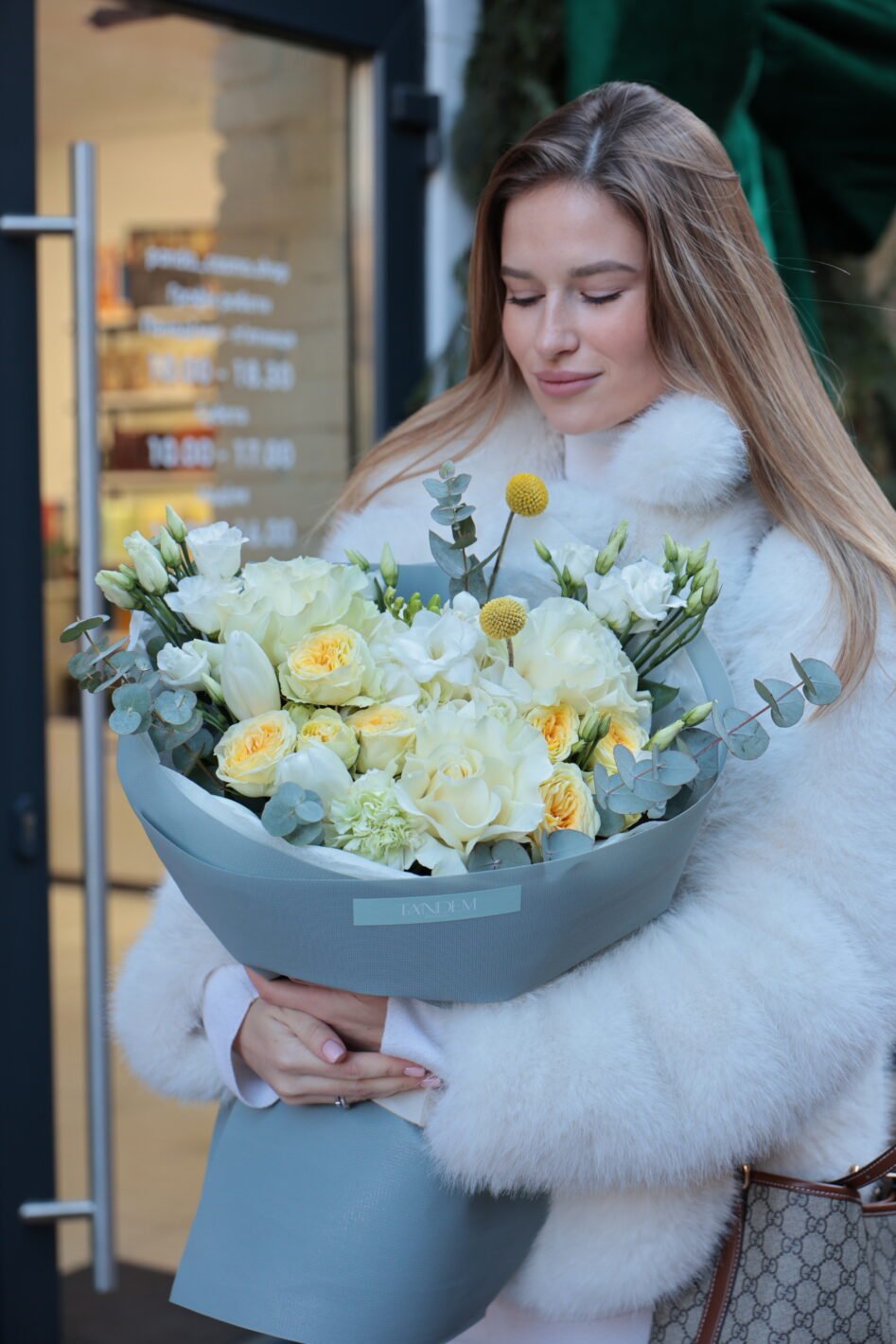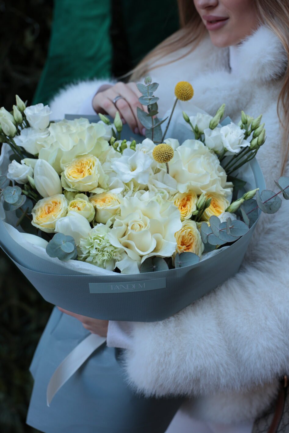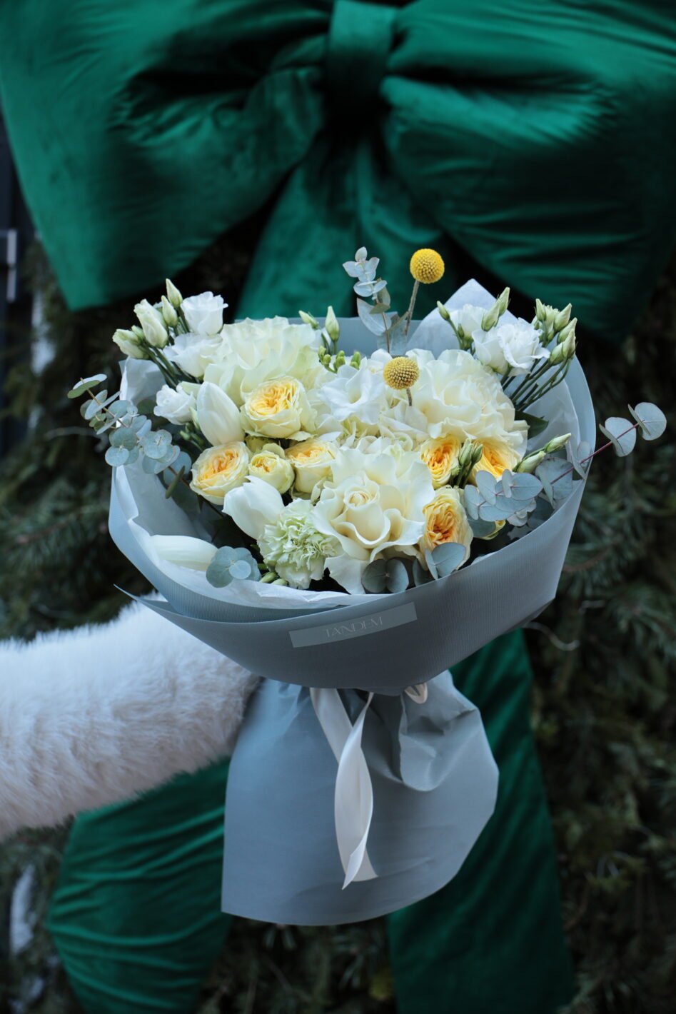 We will do our best to create a bouquet that is as similar as possible to the photo from which the order was made. The compositions are assembled from the best flowers that we have in stock at the time of the order. We reserve the right to make certain substitutions in both the components and the packaging of the bouquet, but we must maintain the general appearance, size, shape of the bouquet and its cost.