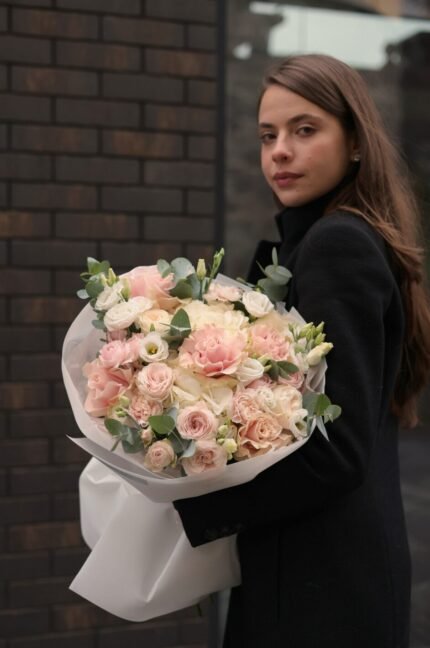 Ніжний букет з трояндами та еустомою