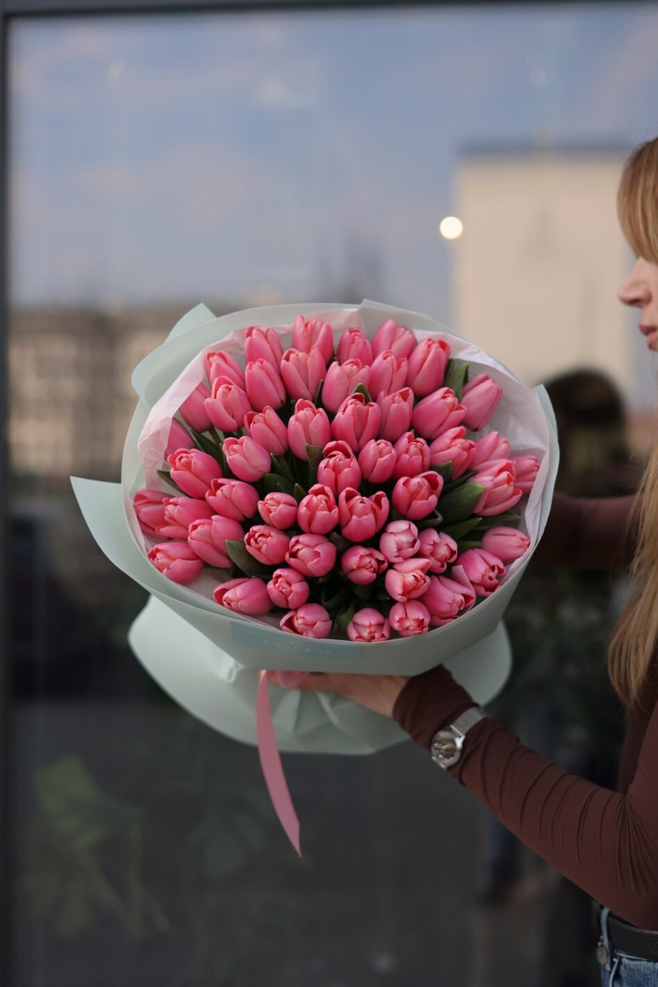 51 яскраво-рожевих тюльпанів