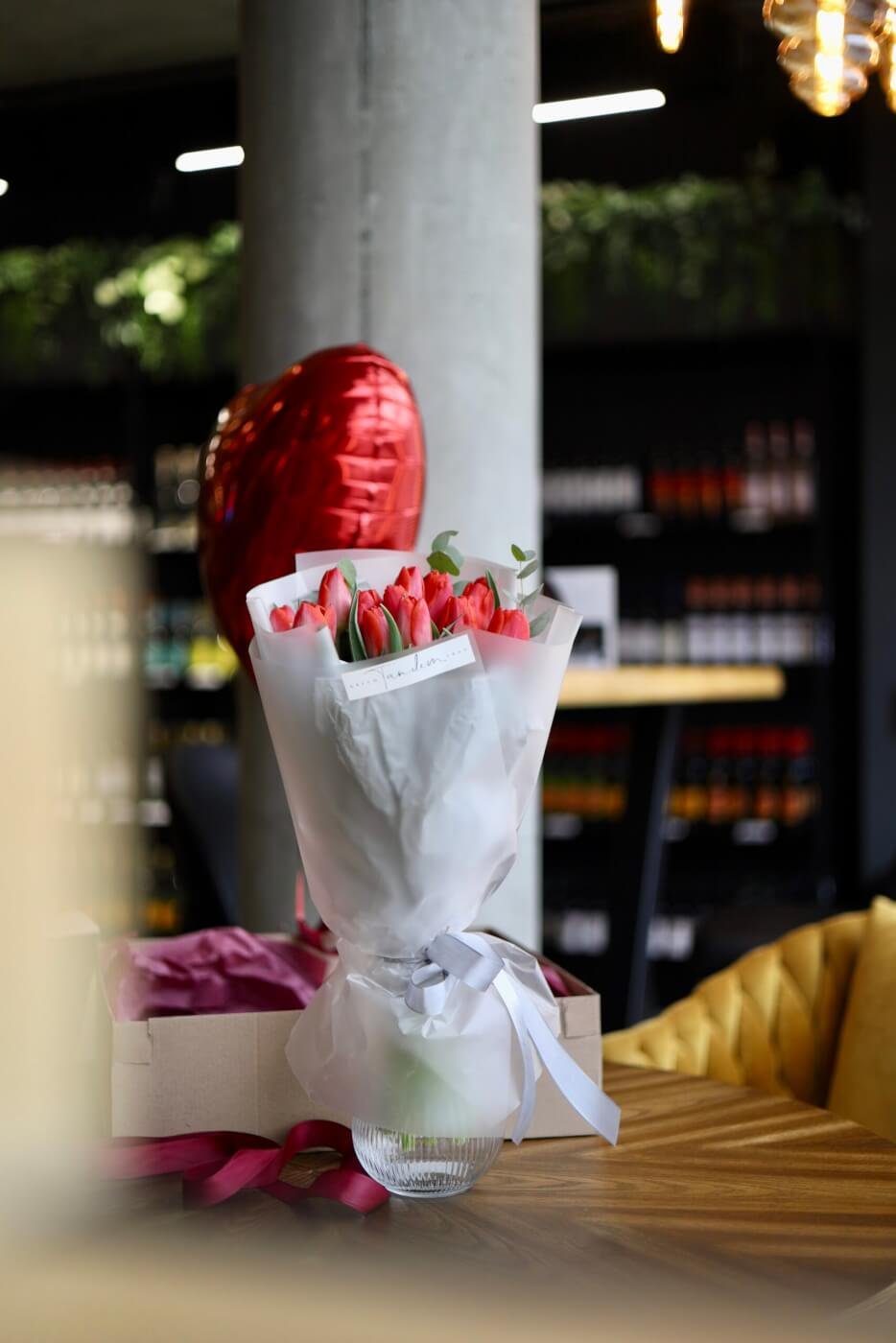 Бокс з тюльпанами та кулькою
