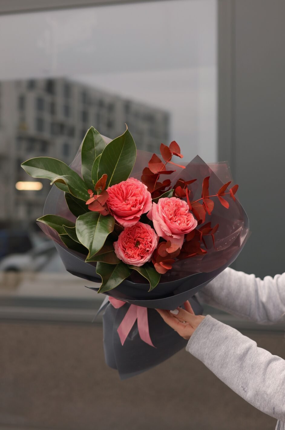 Букет-комплімент з піоновидними трояндами