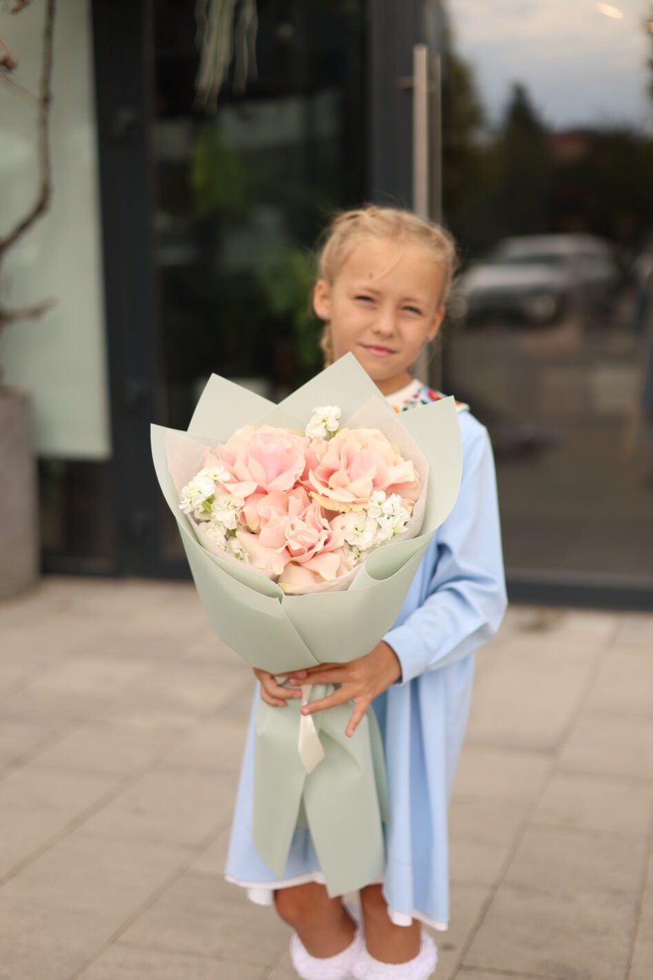Букет-комплімент з трояндами та матіолою