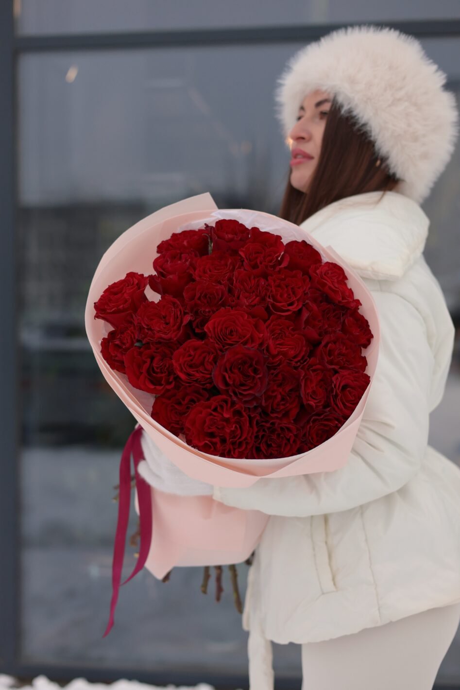 Букет з 25 піоновидних троянд Хартс