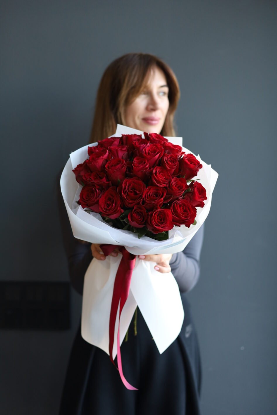 Букет з 25 троянд Мадам ред
