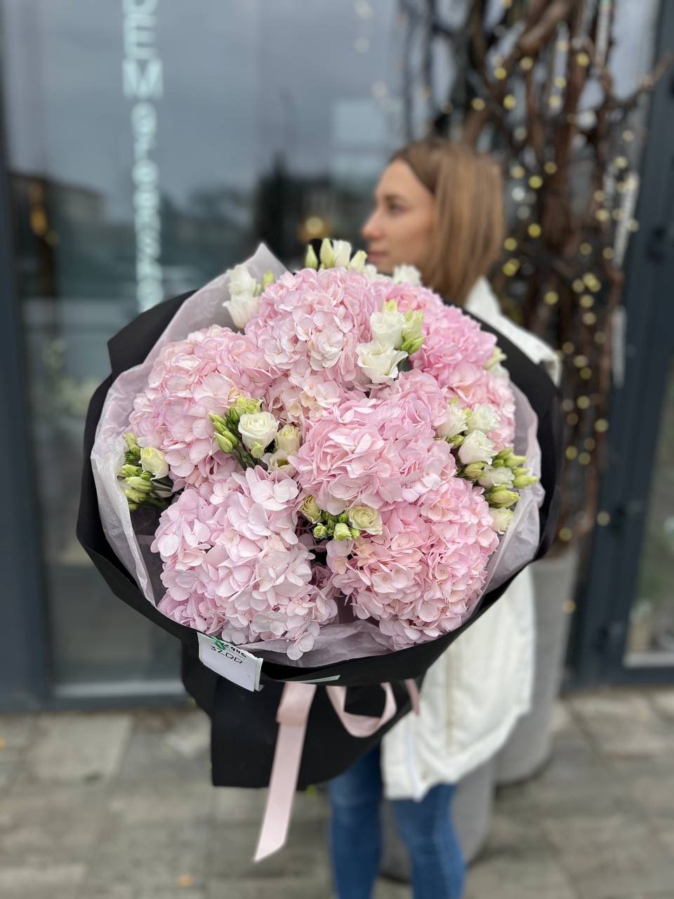 Букет з гортензій та еустоми