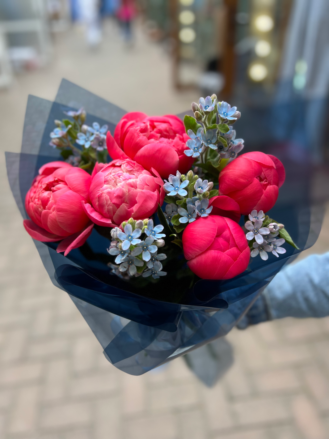 Букет з кораловими півоніями