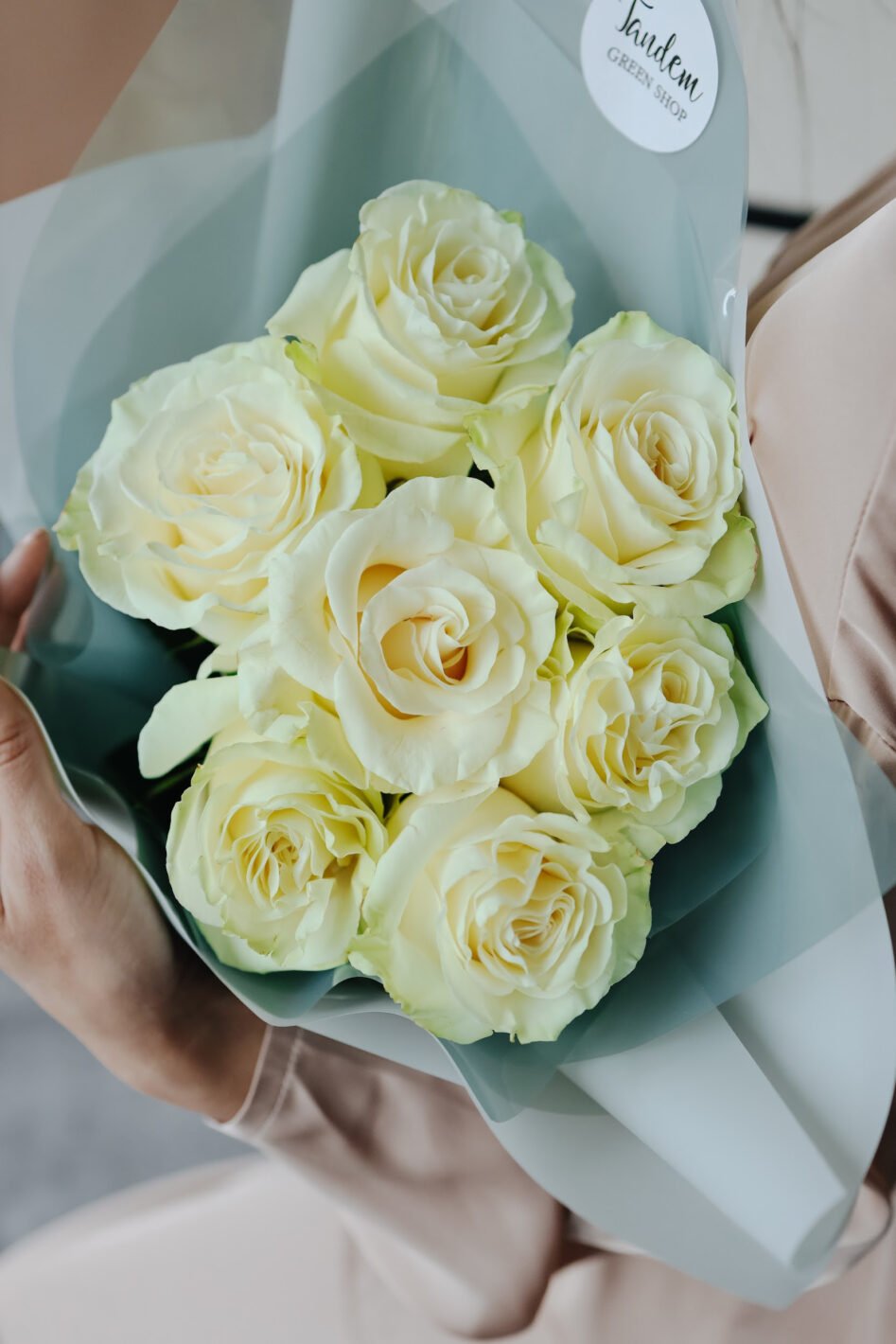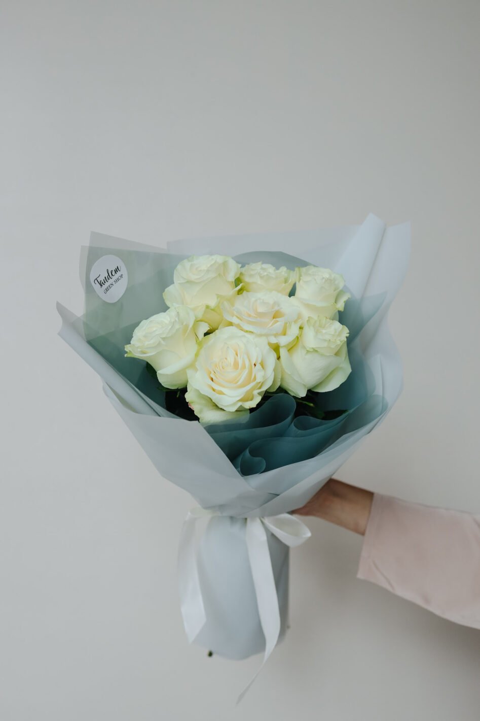 Букет з 7 білих троянд Мондіаль