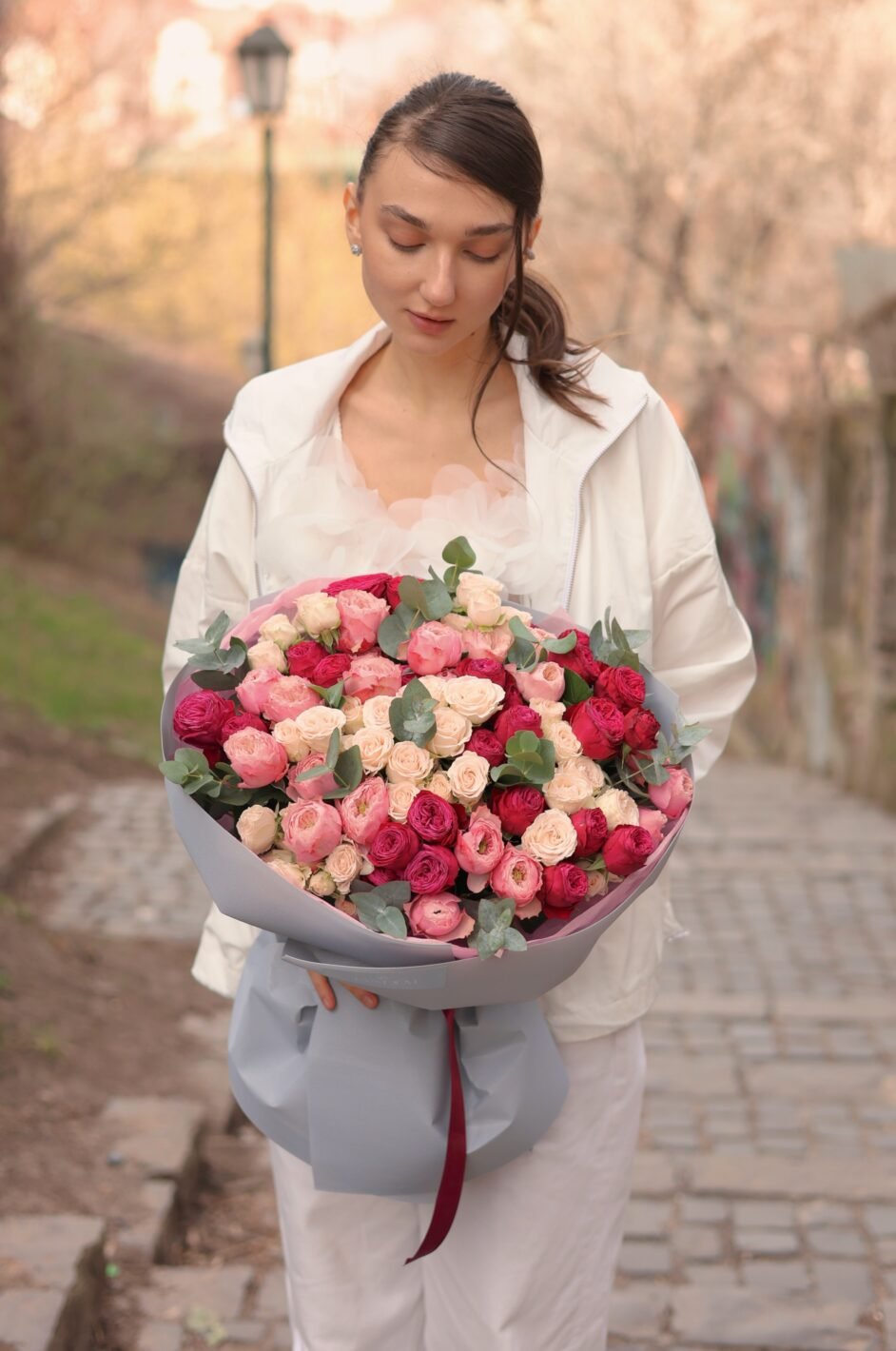 Ми зробимо все від нас можливе, щоб створити букет, максимально схожий до фото, за яким робилось замовлення. Композиції збираються з найкращих квітів, які у нас є в наявності на момент замовлення. Ми залишаємо за собою право робити певні заміни як в складових так і в пакуванні букету, але обов‘язково зберігаємо загальний вигляд, розмір, форму букету та його вартість.
