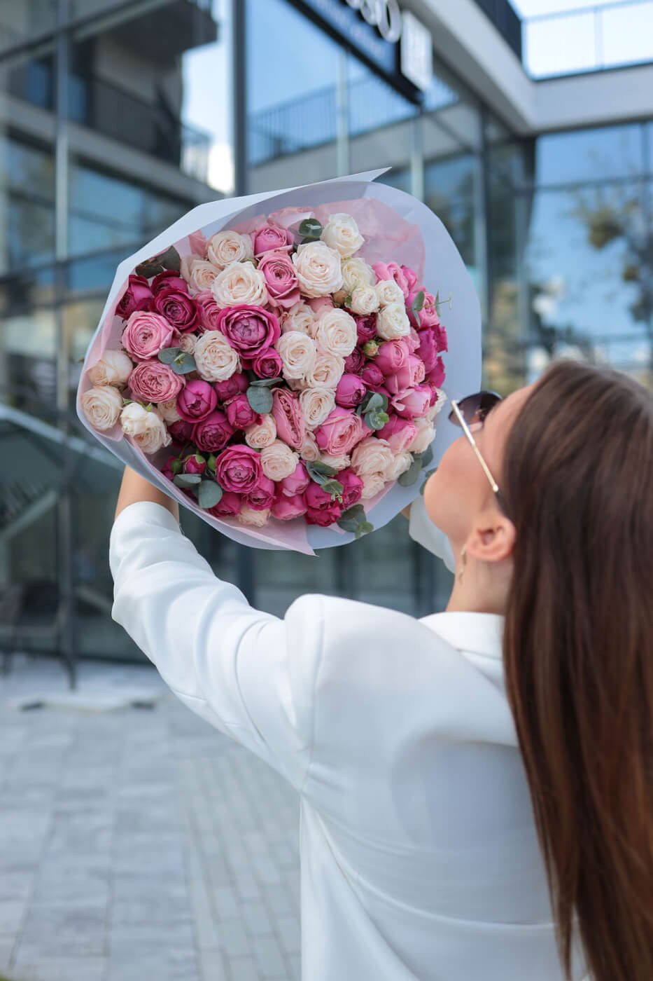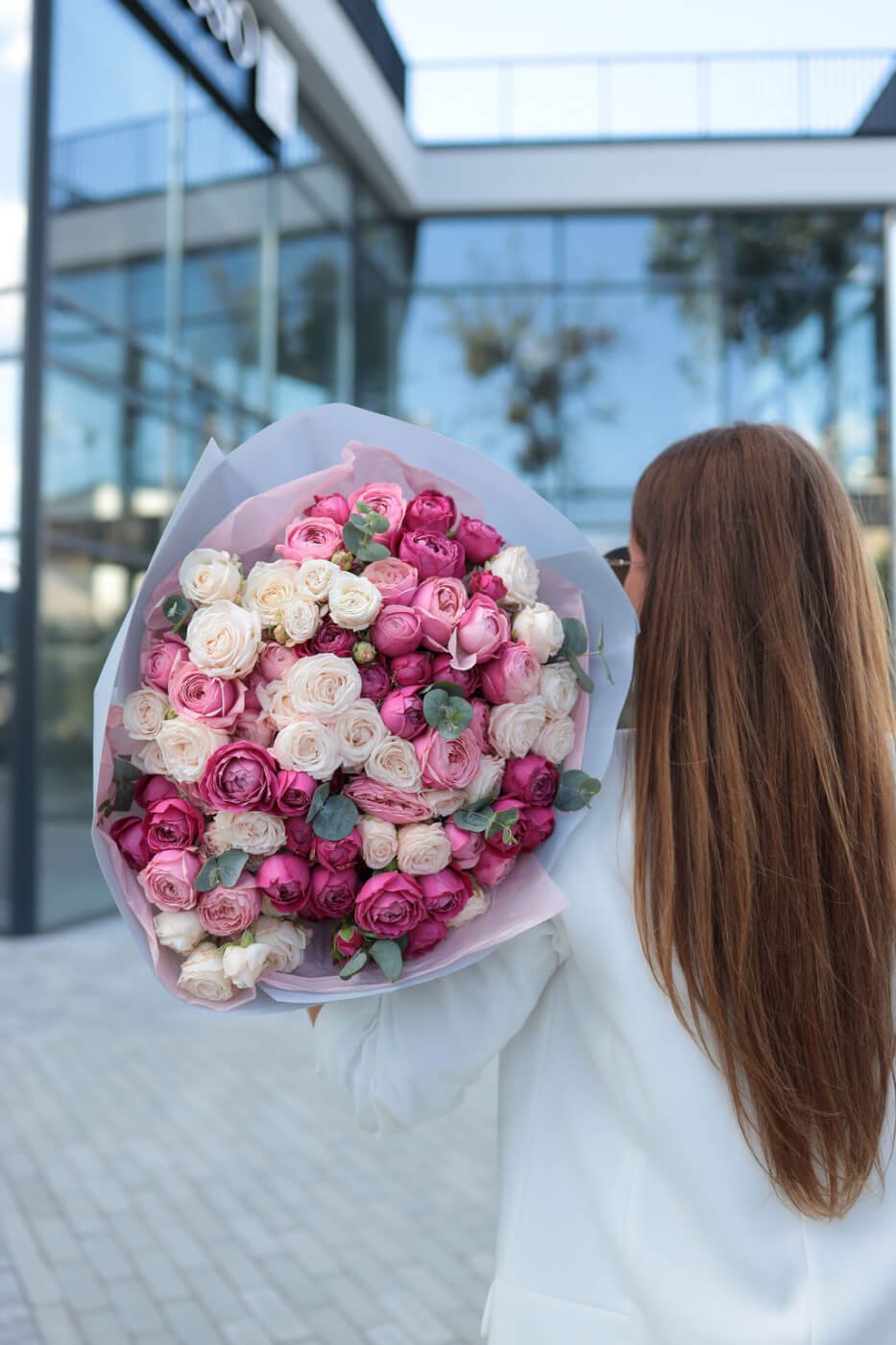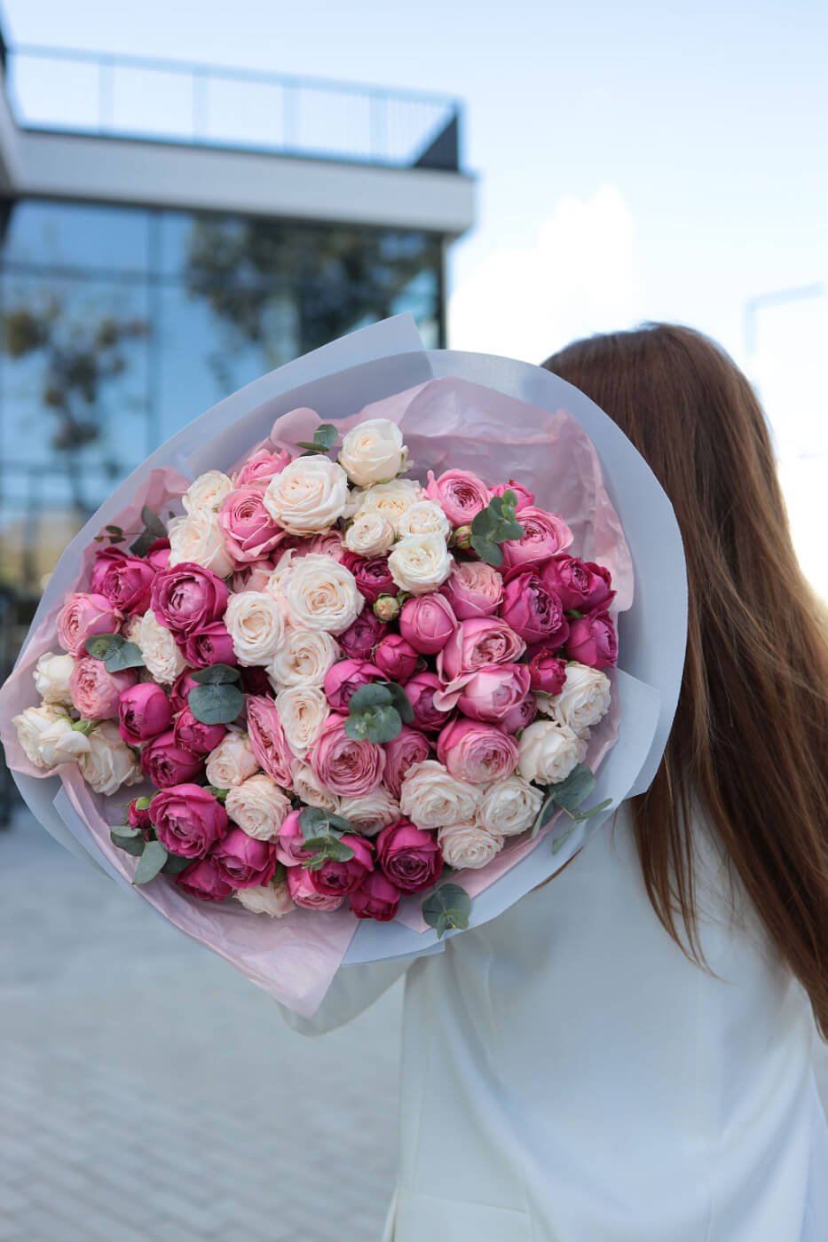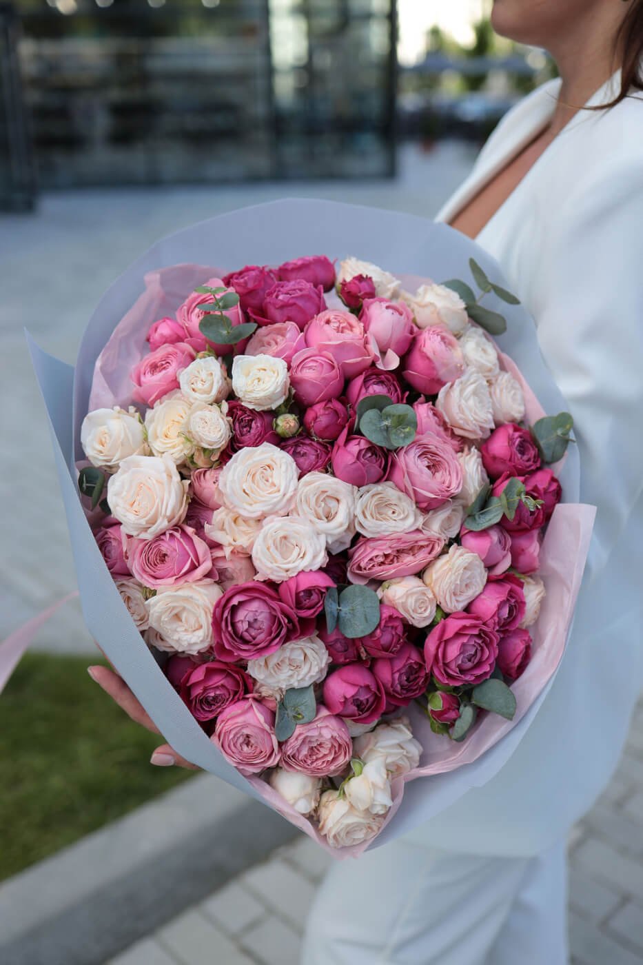 Букет з піоновидних кущових троянд