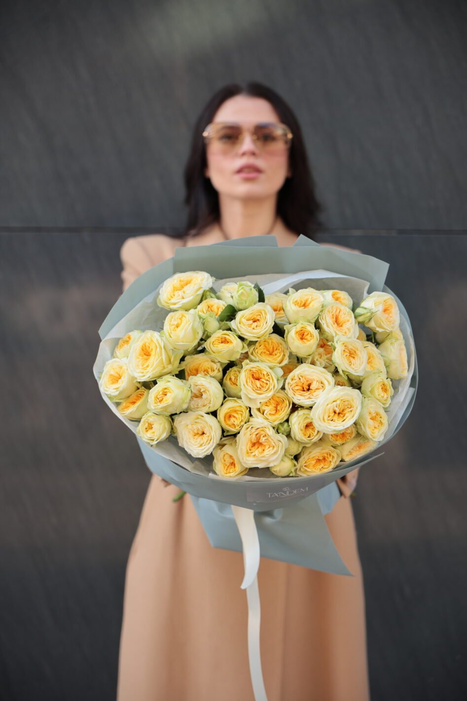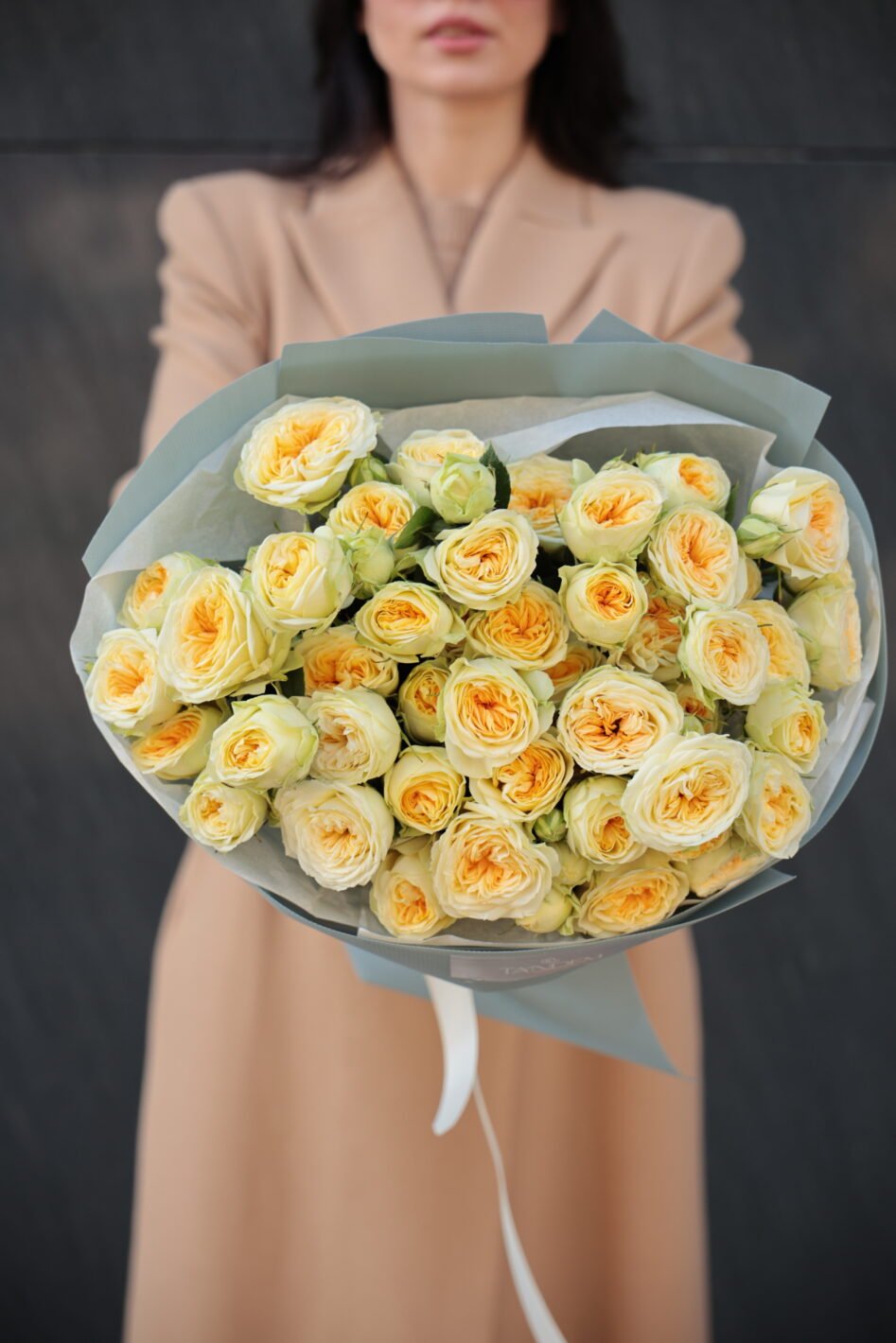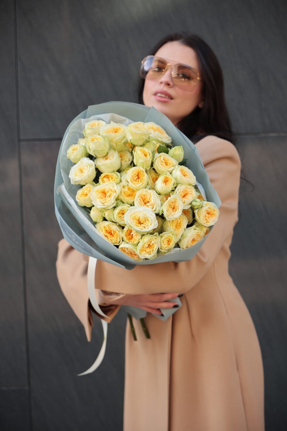 Букет з піоновидних жовтих троянд