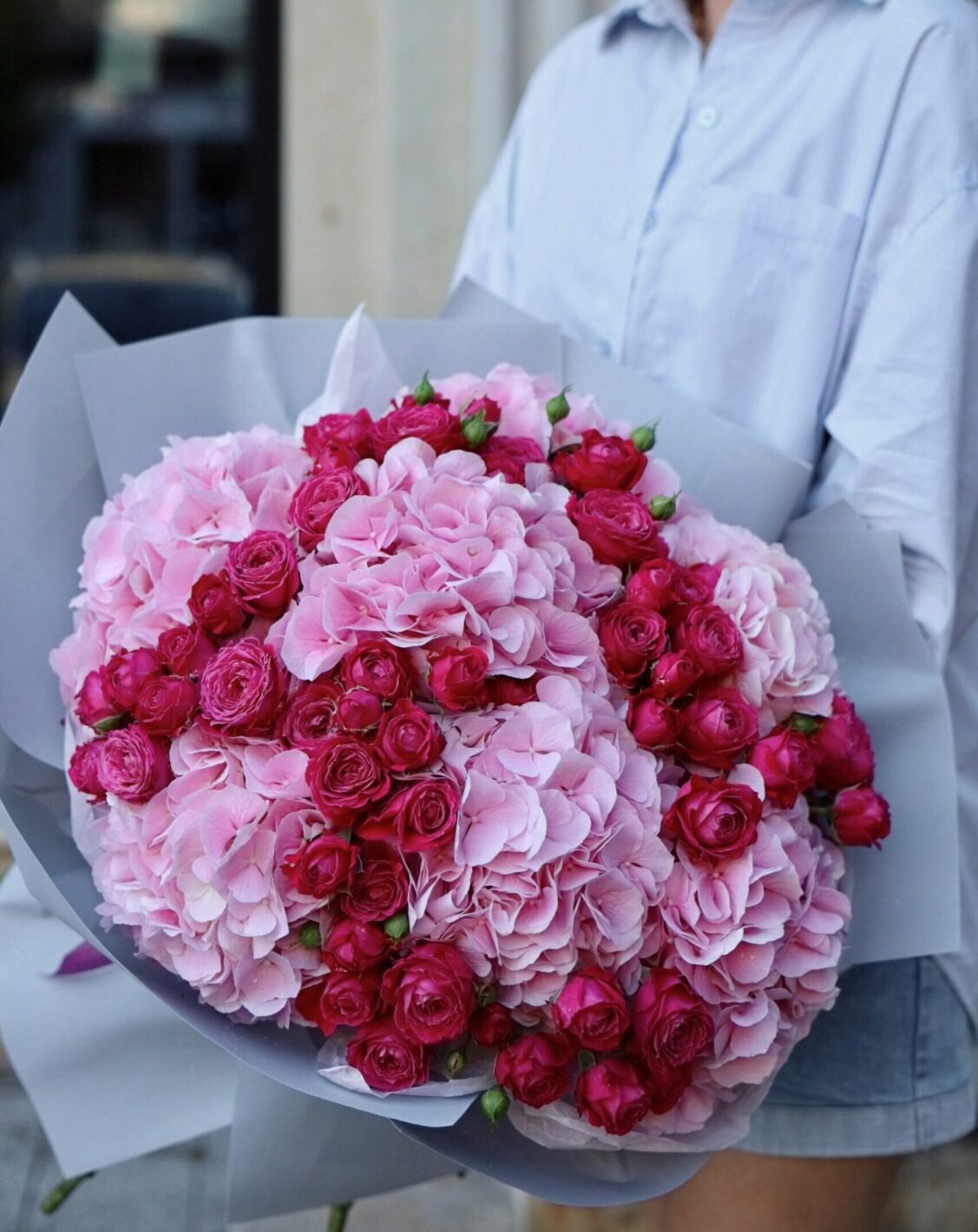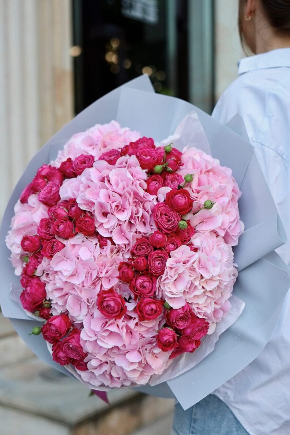 Букет з рожевих гортензій і троянд Марвеловз баблз