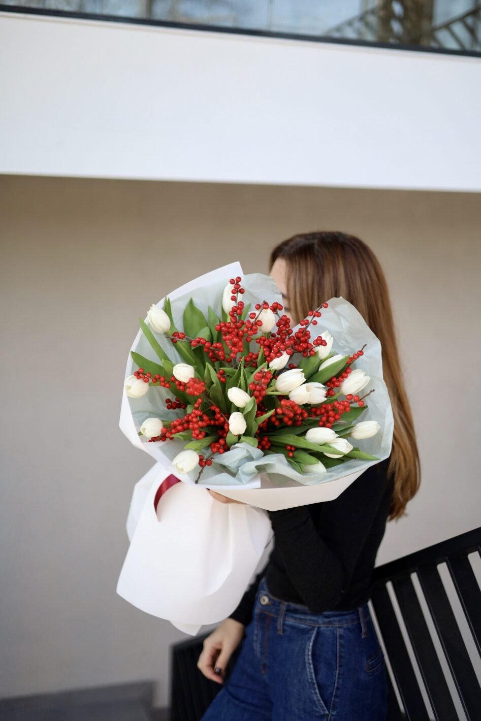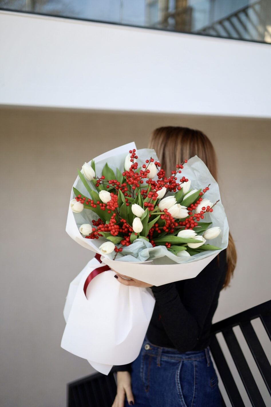 Букет з білих тюльпанів та ілекса