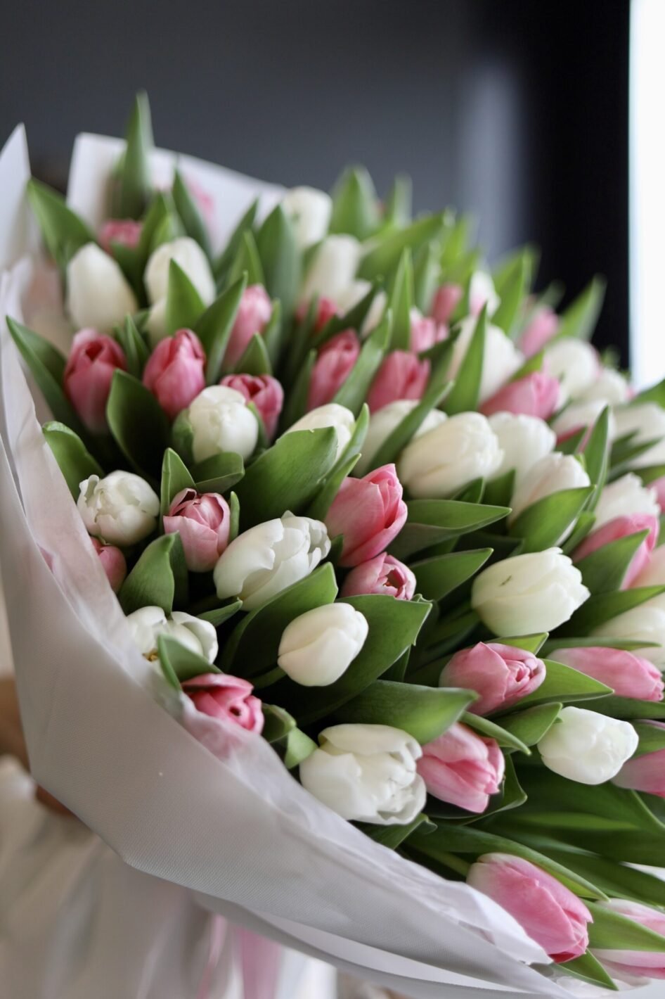 Букет зі 101 біло-рожевого тюльпану