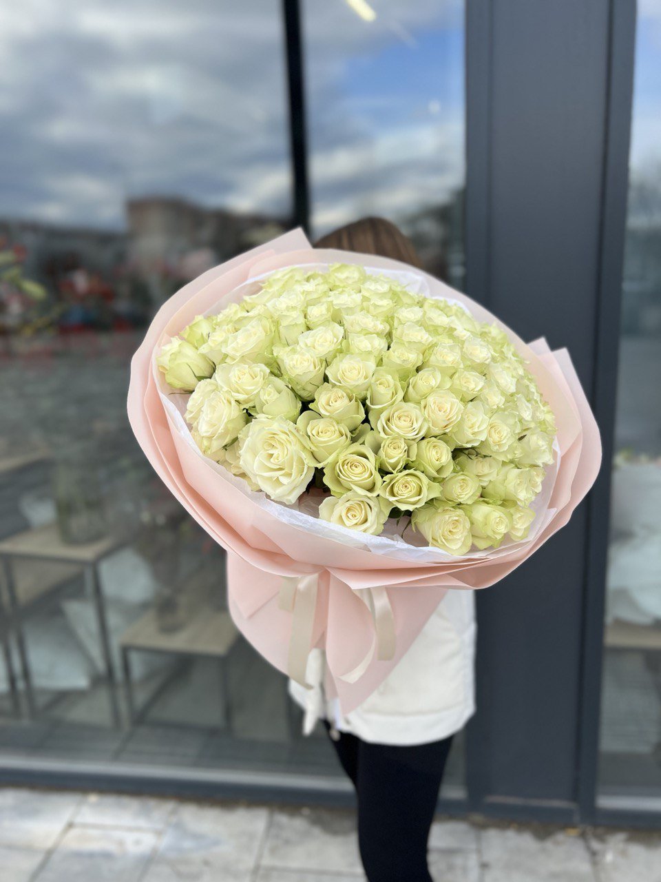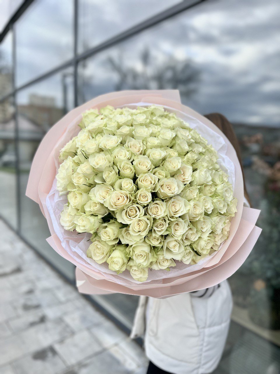 Букет зі 101 білої троянди Атени