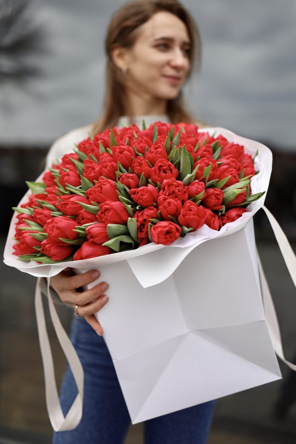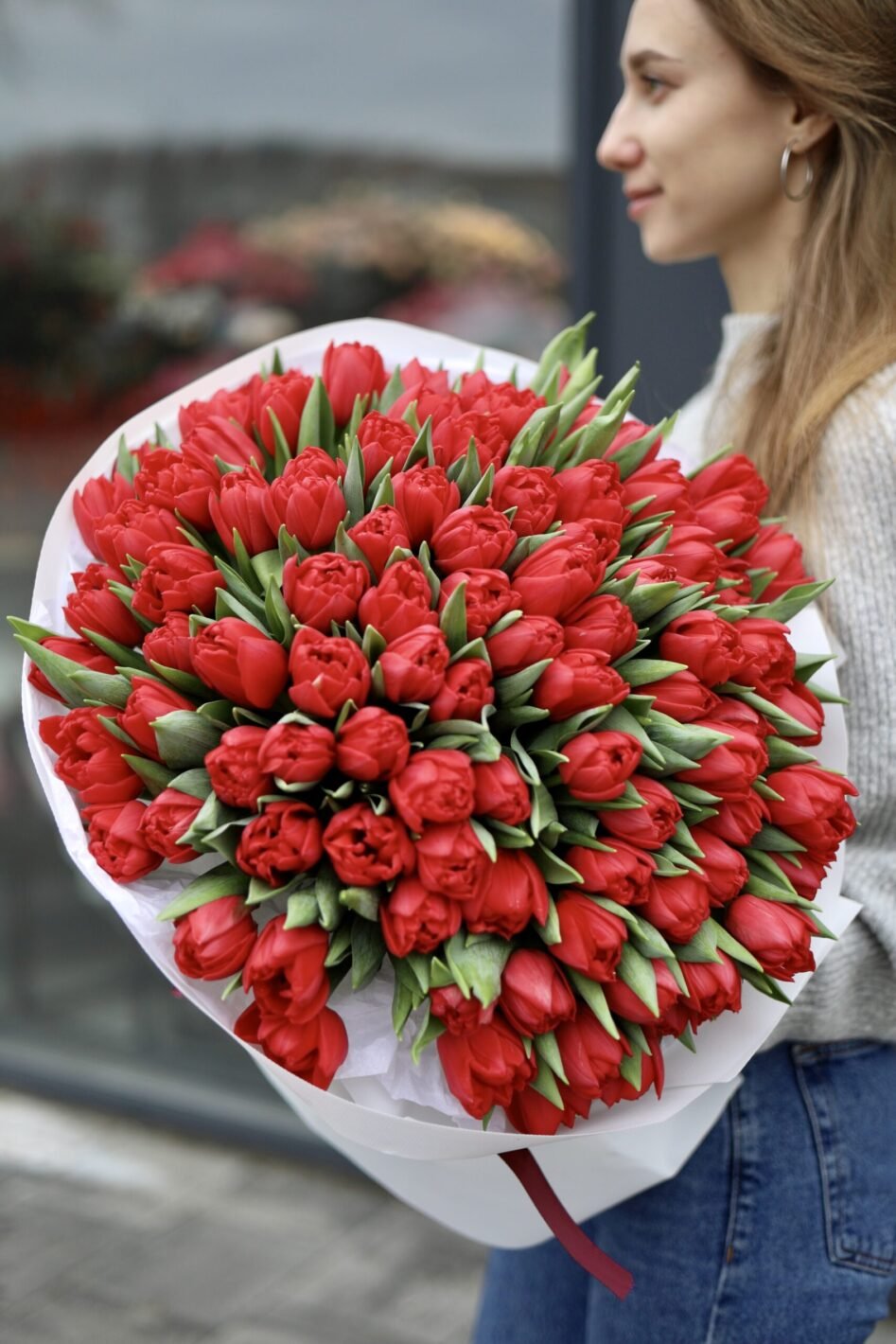 Букет зі 101 червоного тюльпану