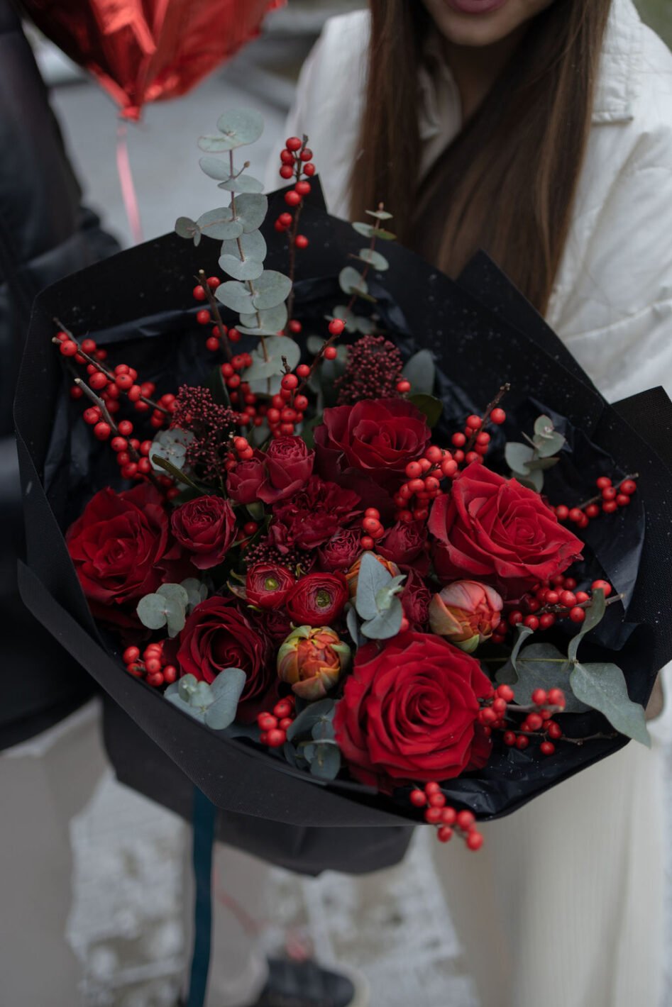 Червоний небанальний букет не лише з трояндами