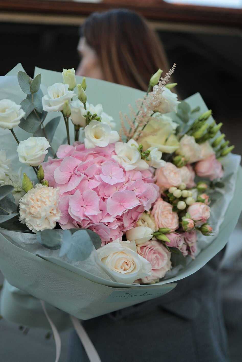 Bouquet with hydrangea, freesia and peony roses