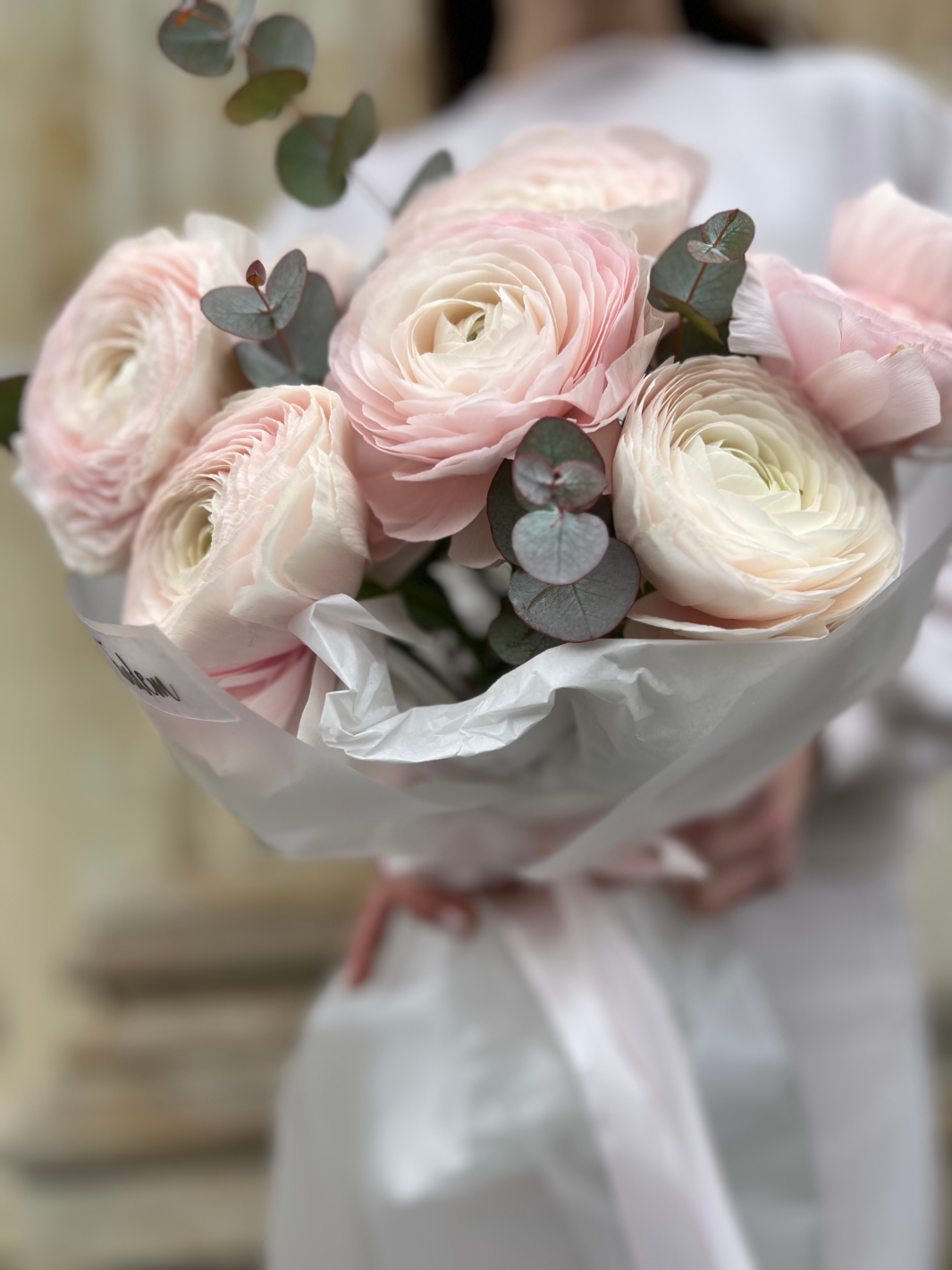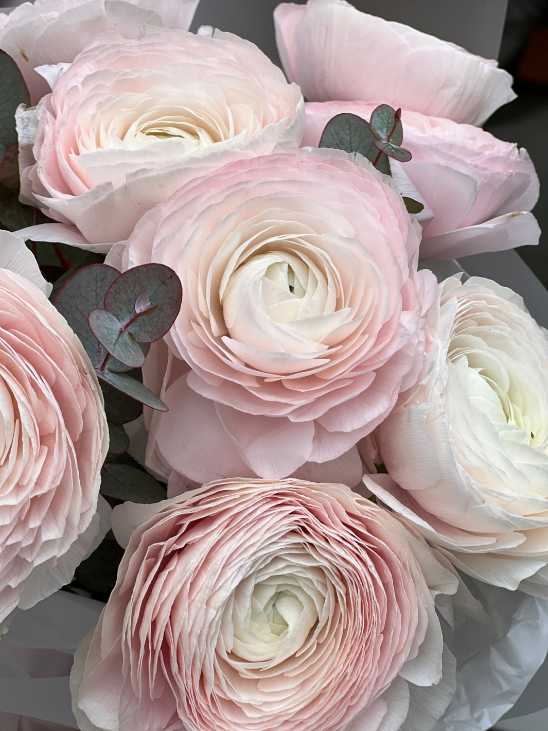Bouquet with 9 ranunculus and eucalyptus