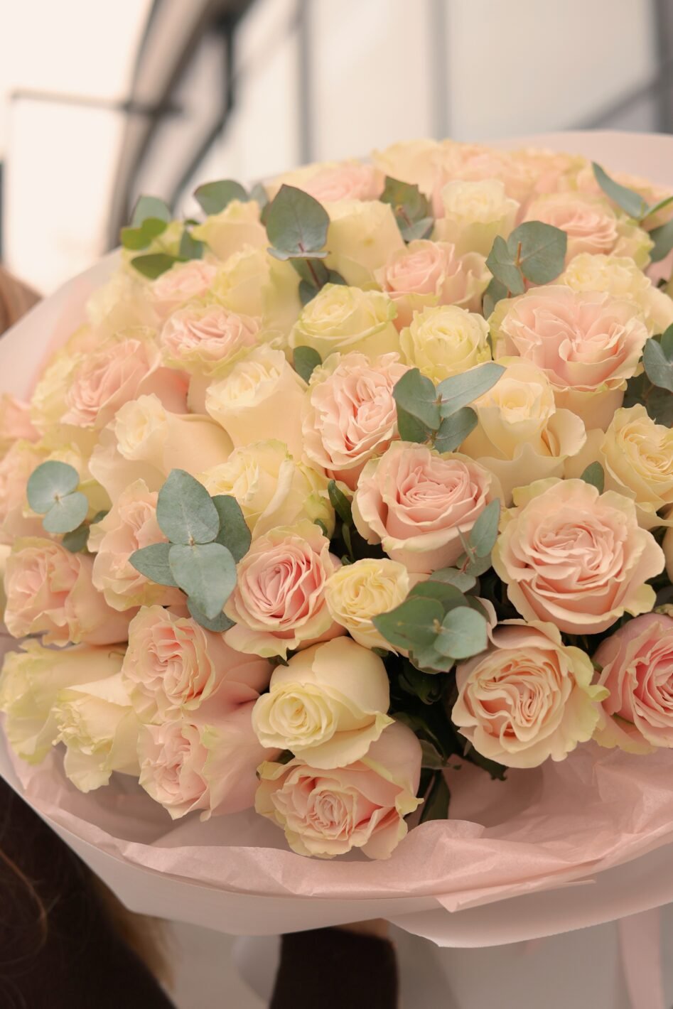 Букет зі 51 біло-рожевої троянди Мондіаль