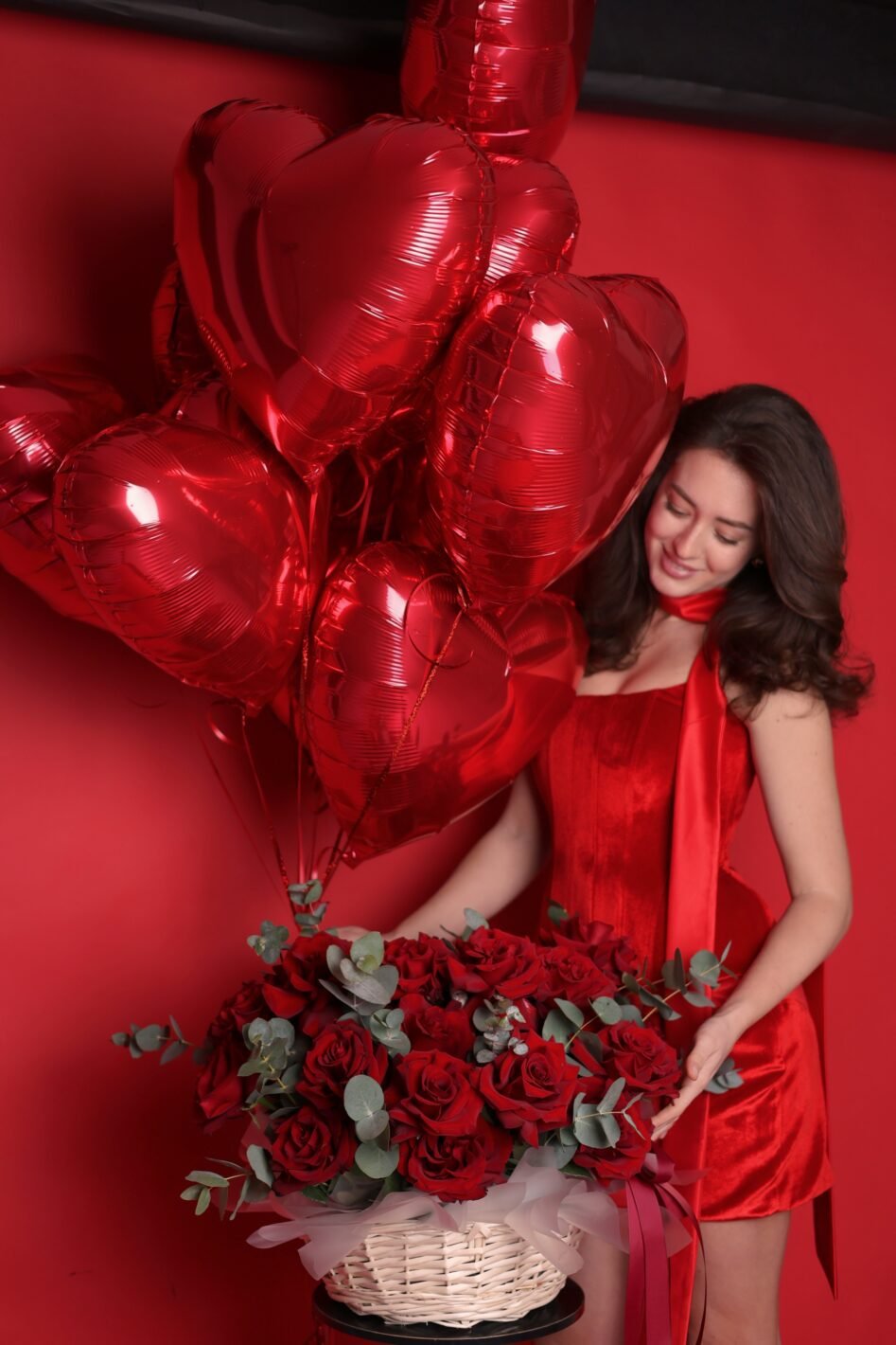 Кошик з червоних французьких троянд