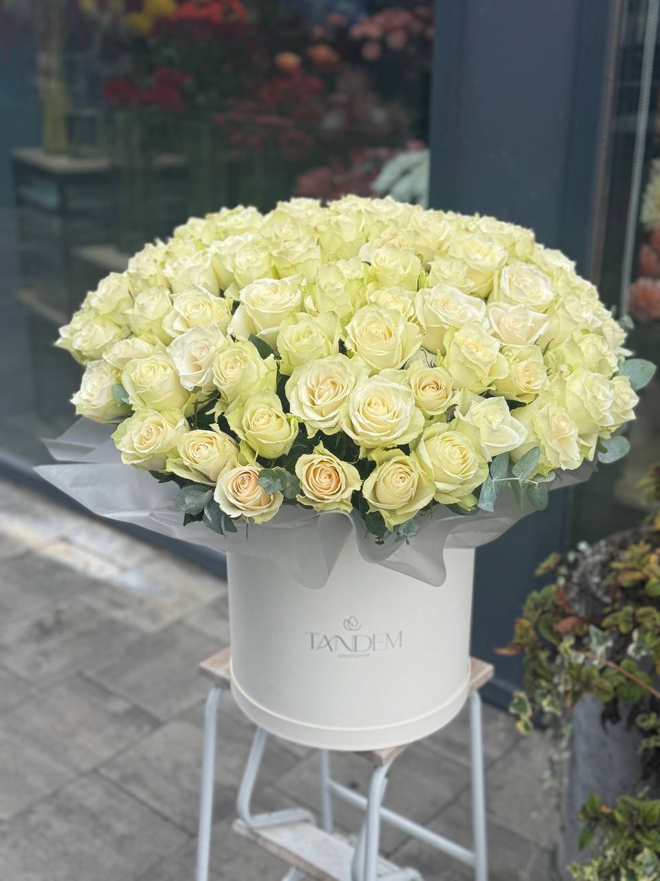 котобка зі 101 білої троянди Атена