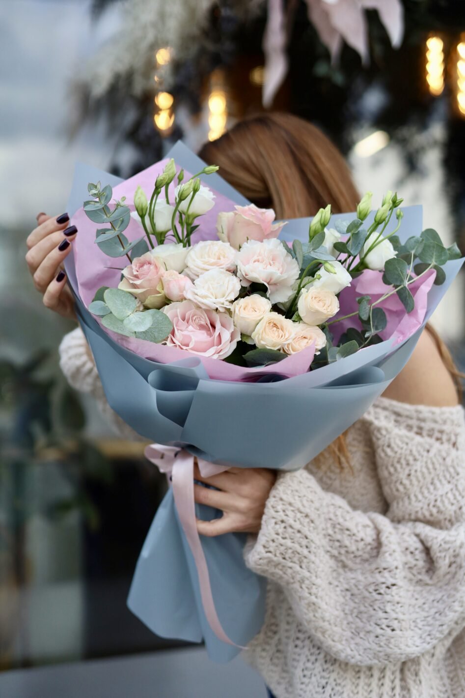Delicate mix with roses and eustoma