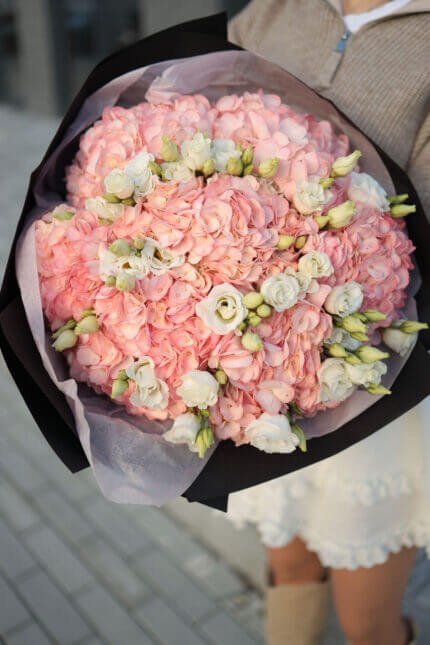 Букет з гортензій та еустоми