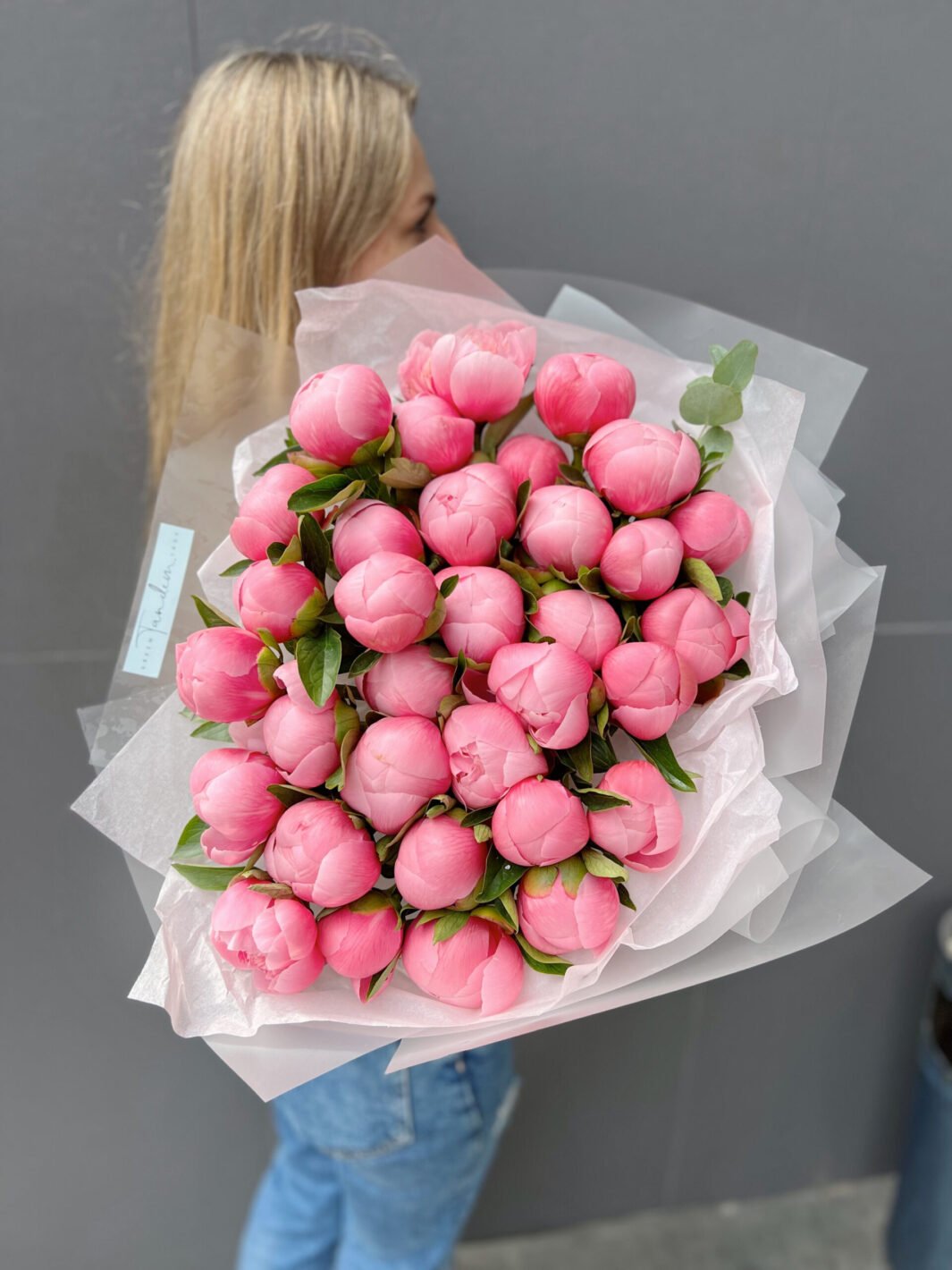 Монобукет із 25 півоній етчед салмон