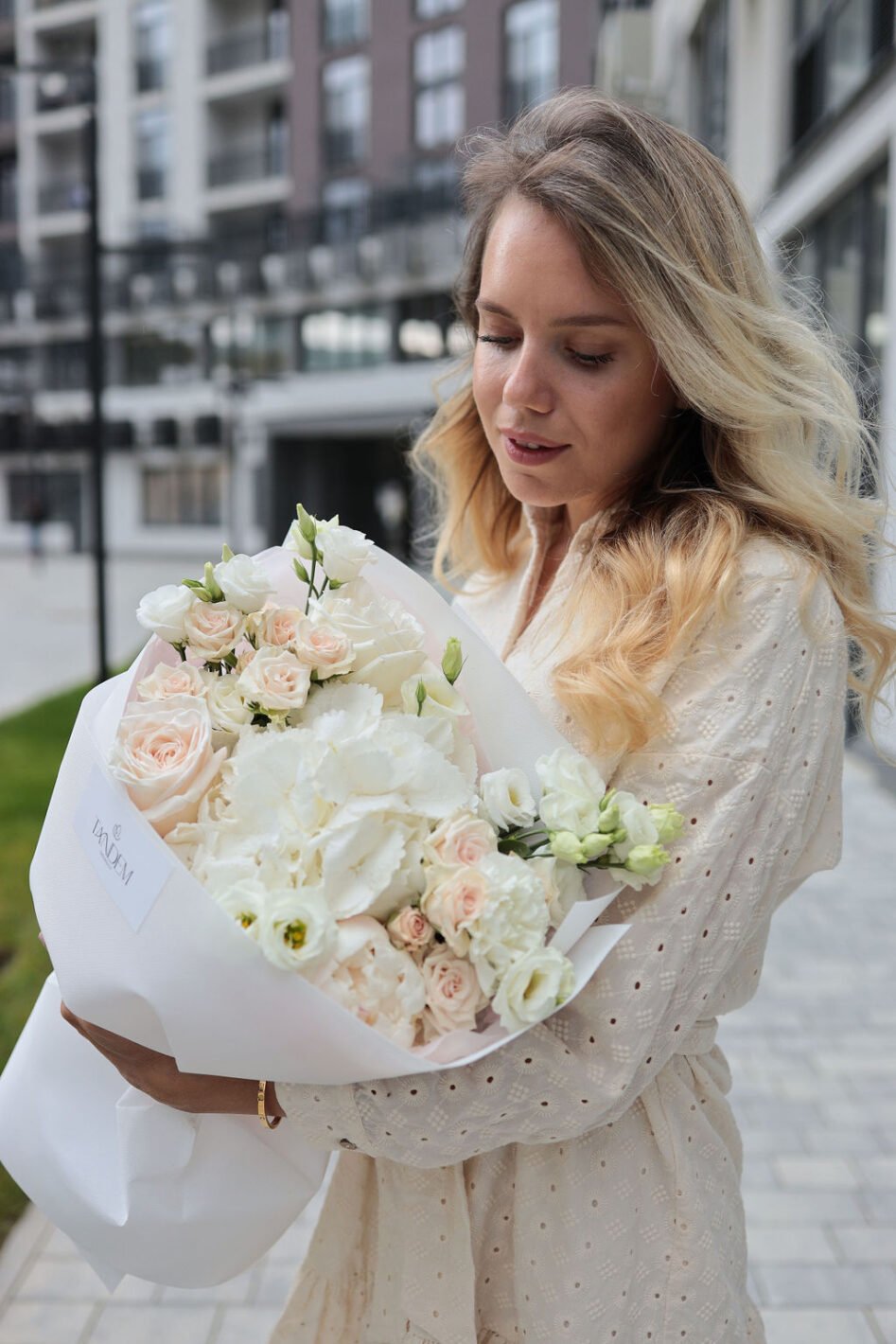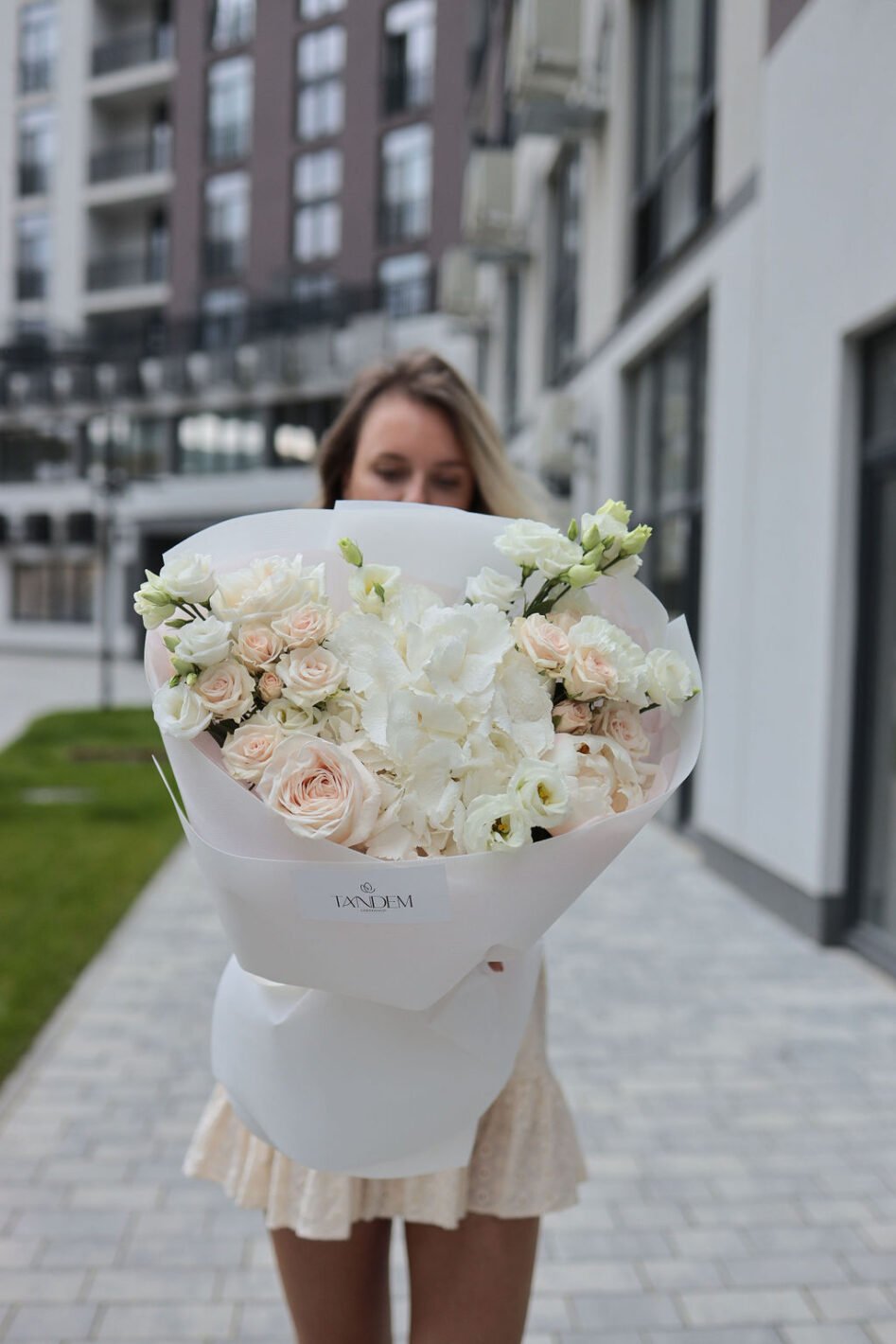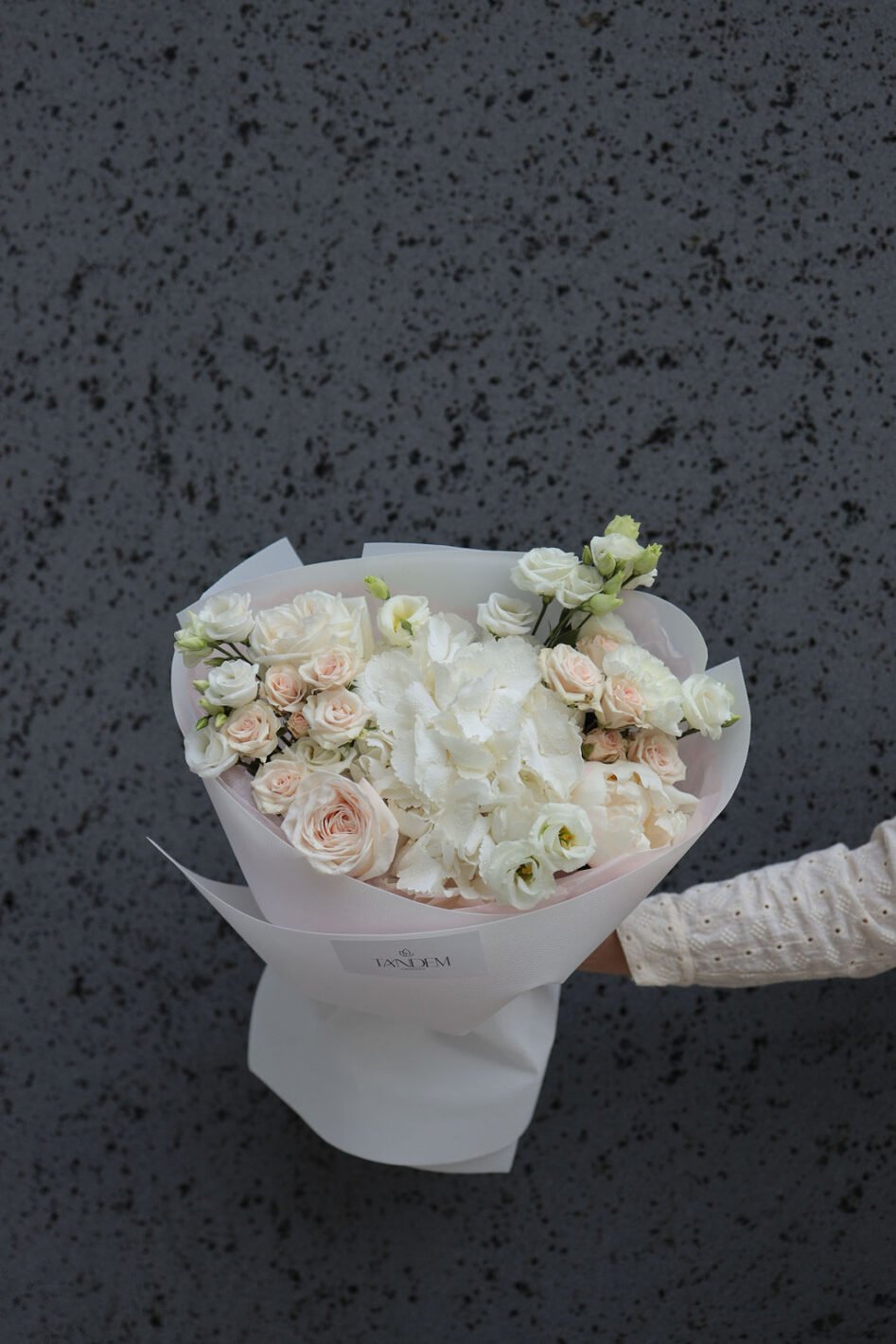 Ніжний мікс з гортензією та піоновидними трояндами Вайт Охара
