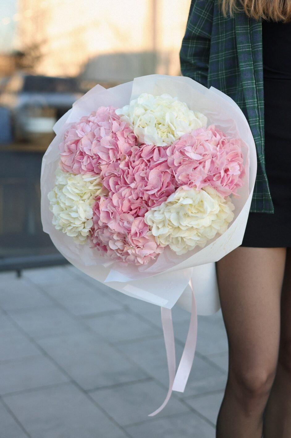 Поєднання білих та рожевих гортензій