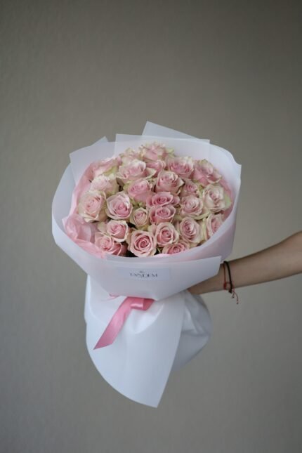 Оригінальна ціна: 11000 грн.10000 грнПоточна ціна: 10000 грн.Букет з 31 троянди пінк Атена