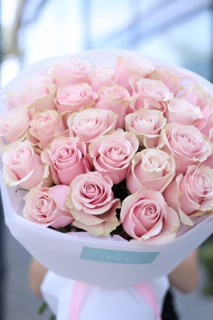 Монобукет із 25 троянд сорту Мондіаль з евкаліптом