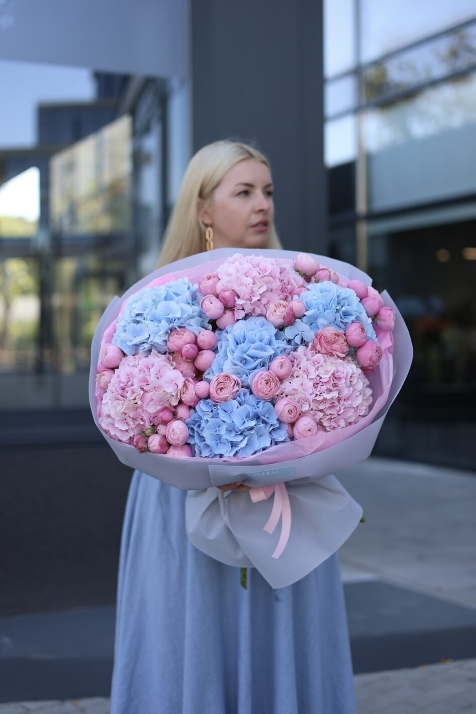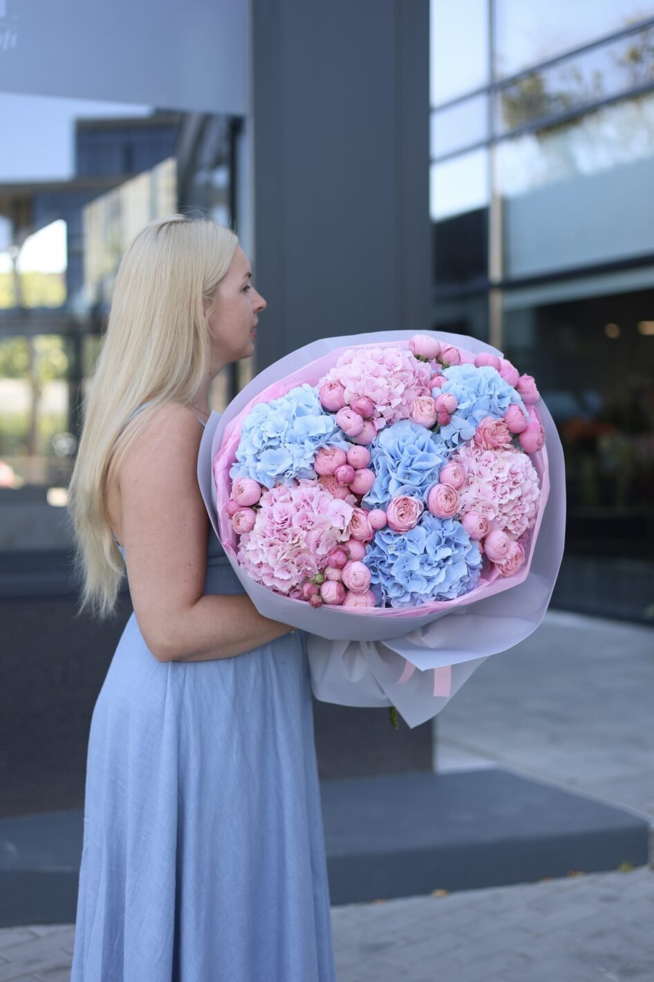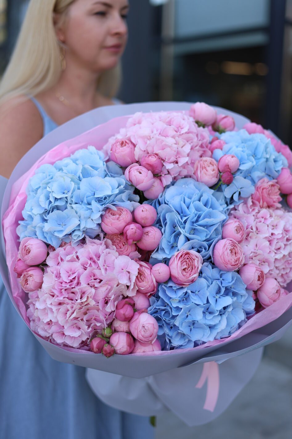 Великий букет з гортензіями та піоновидними трояндами Сільва