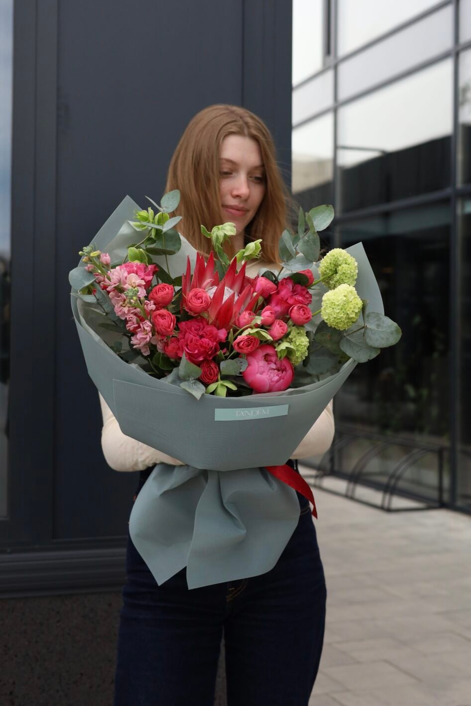 Ми зробимо все від нас можливе, щоб створити букет, максимально схожий до фото, за яким робилось замовлення. Композиції збираються з найкращих квітів, які у нас є в наявності на момент замовлення. Ми залишаємо за собою право робити певні заміни як в складових так і в пакуванні букету, але обов‘язково зберігаємо загальний вигляд, розмір, форму букету та його вартість.