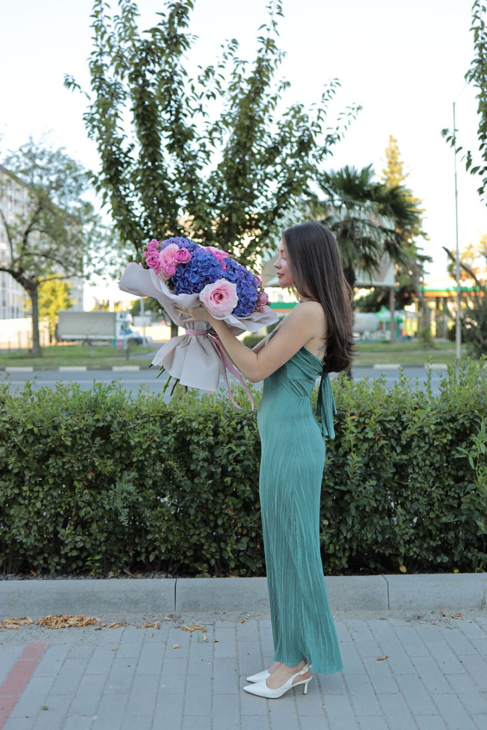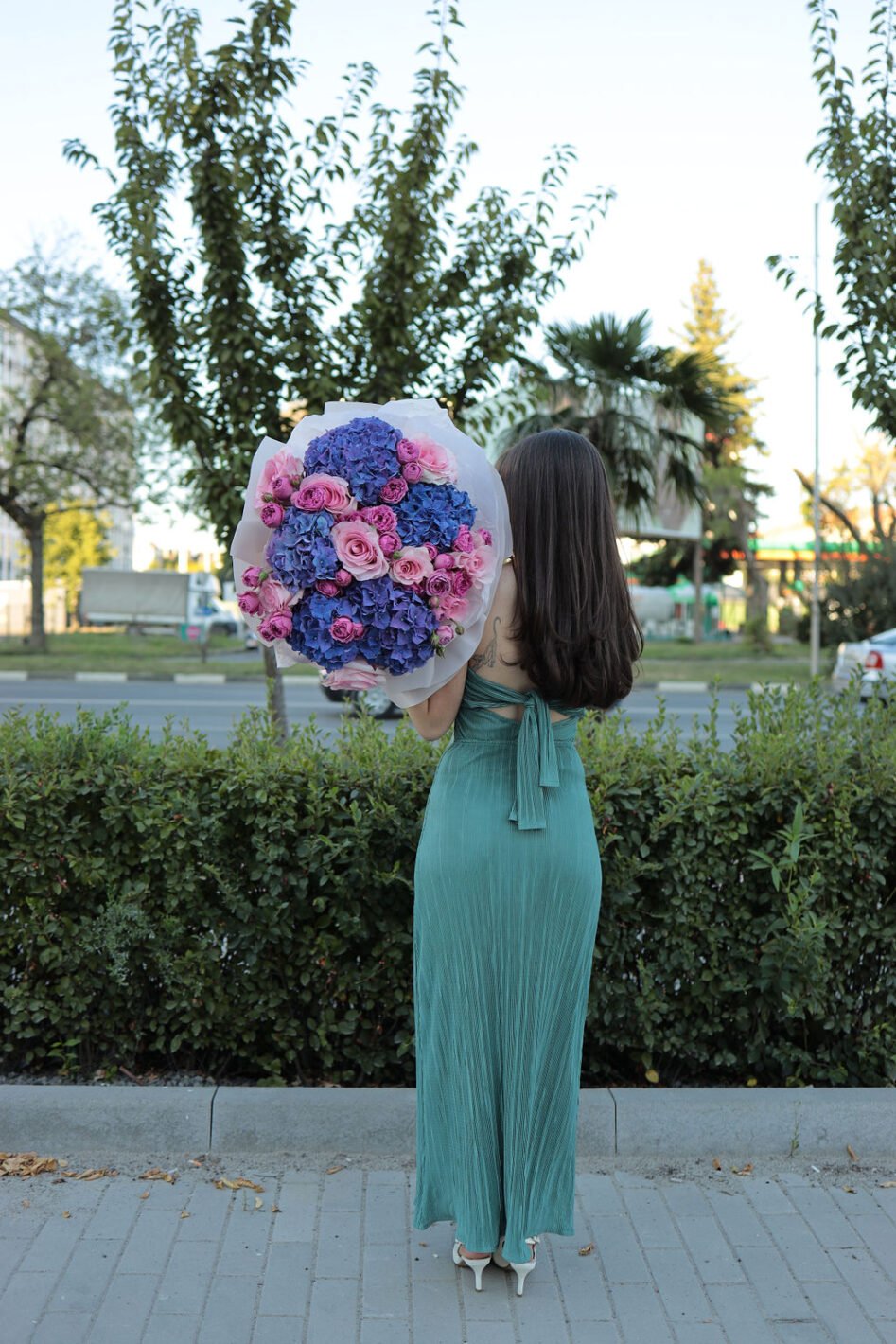 Яскравий мікс із гортензій та піоновидніх троянд Кріста