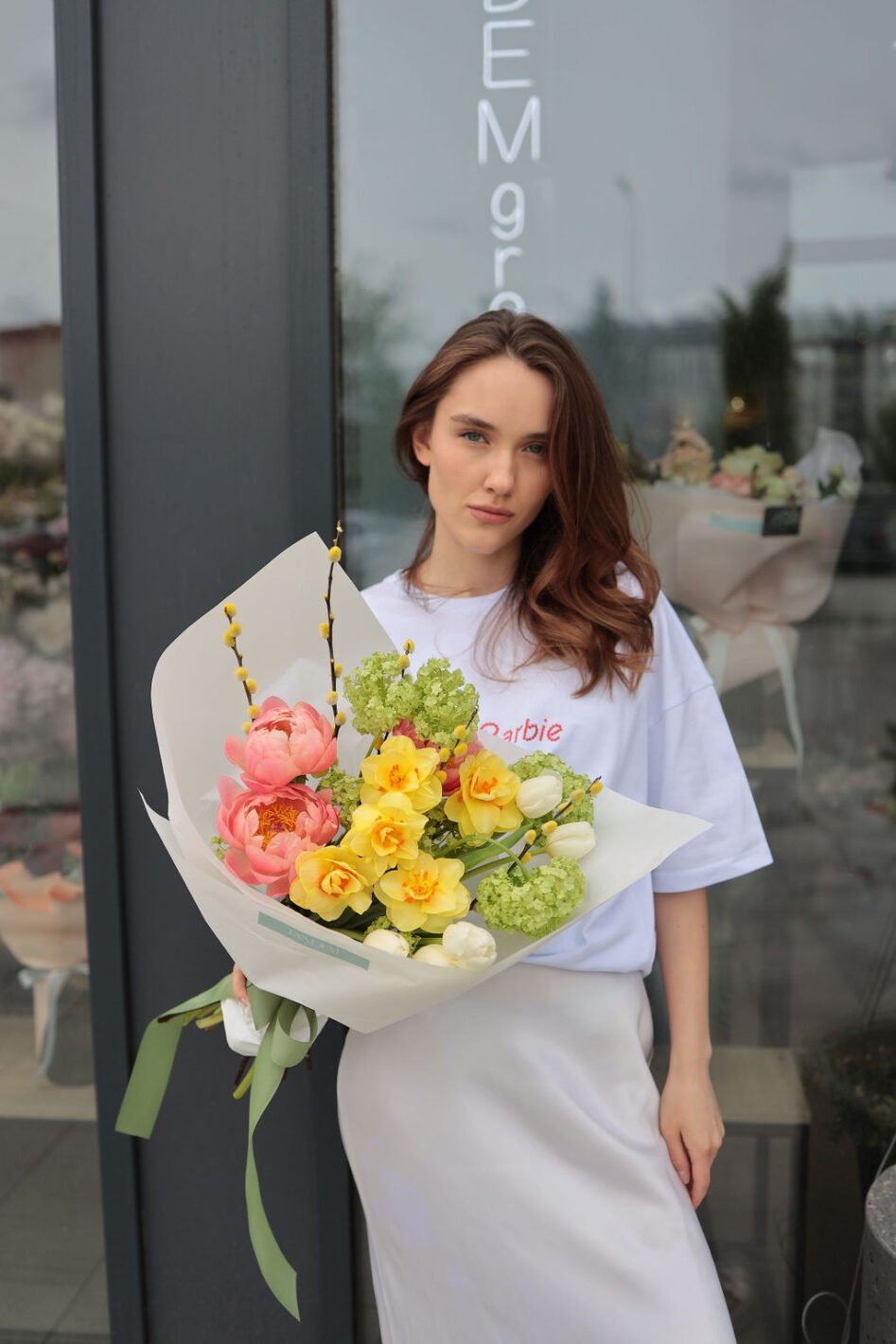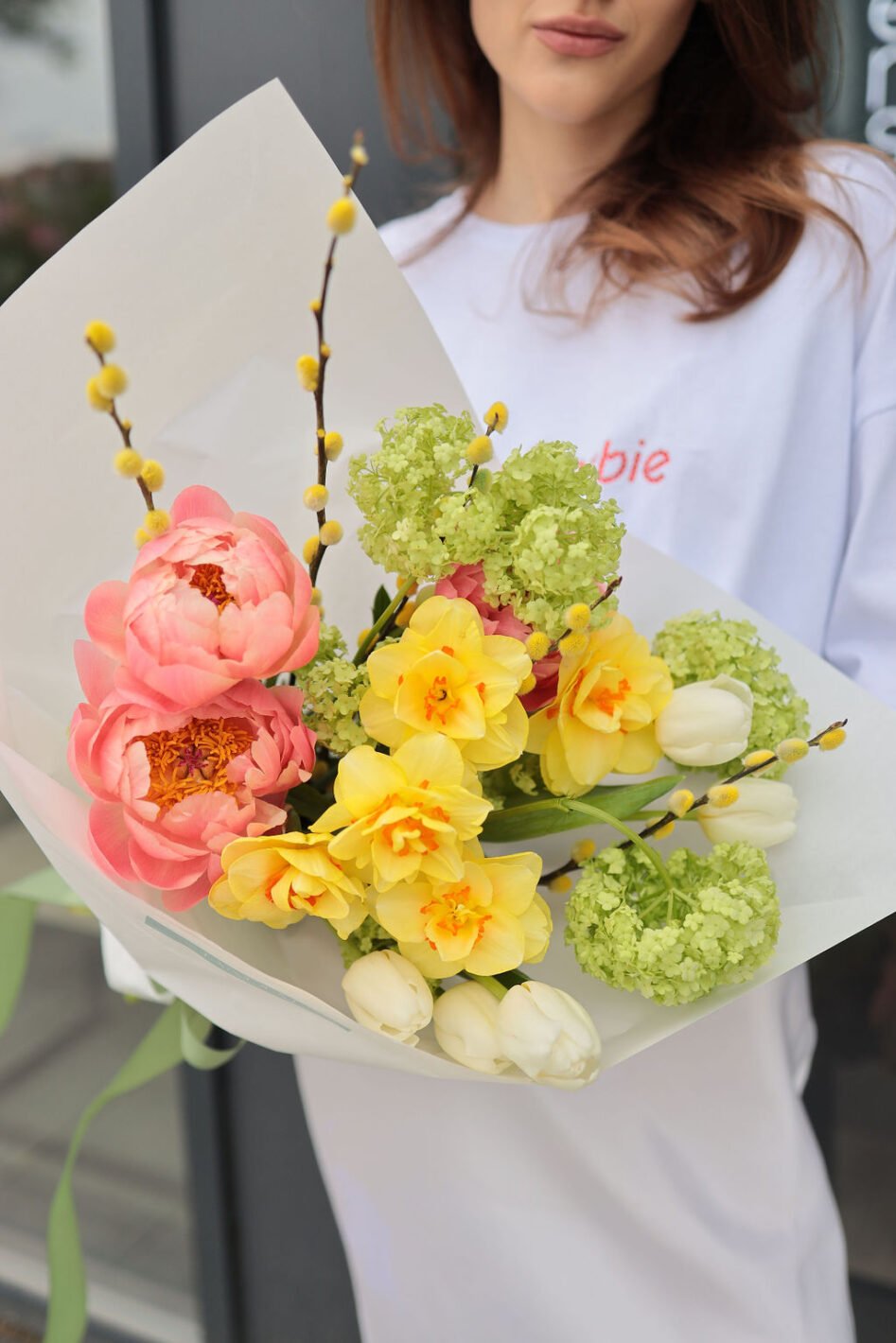 Яскравий весняний мікс з півоніями та нарцисами