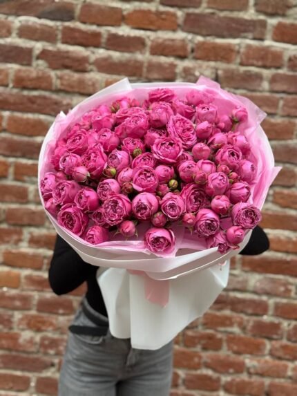 Оригінальна ціна: 7200 грн.6760 грнПоточна ціна: 6760 грн.Монобукет з піоновидних троянд Місті Баблз