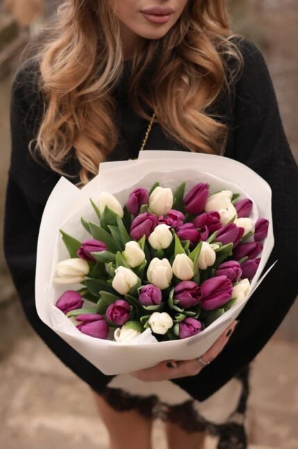 Букет зі 101 піоновидного тюльпана дабл прайс