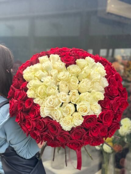 Оригінальна ціна: 3670 грн.3160 грнПоточна ціна: 3160 грн.Букет зі 101 рожево-білої троянди Атена