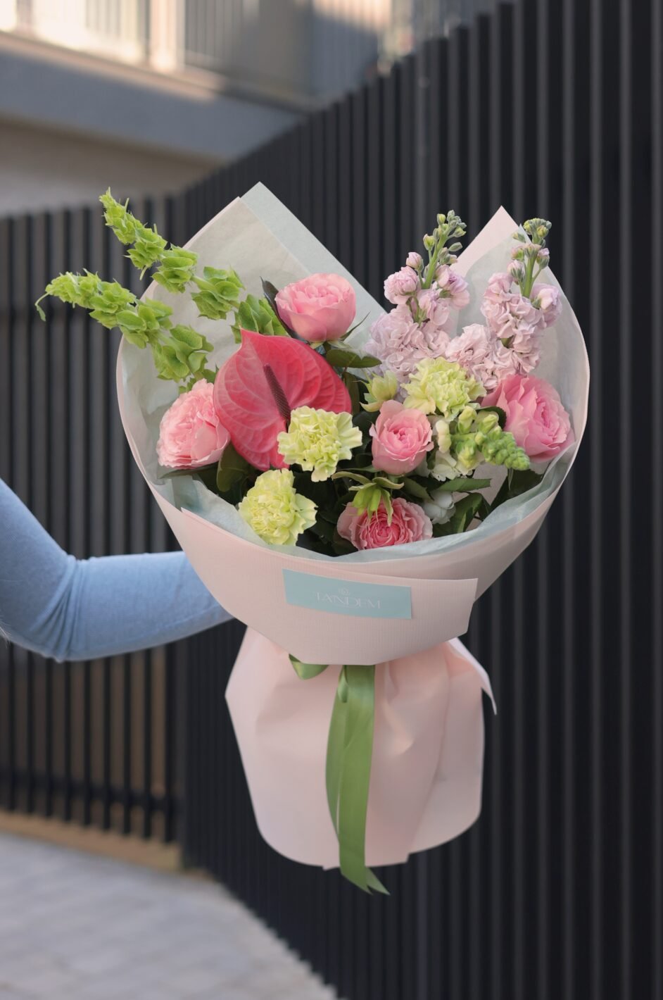 Весняний букет з піоновидною трояндою та матіолою