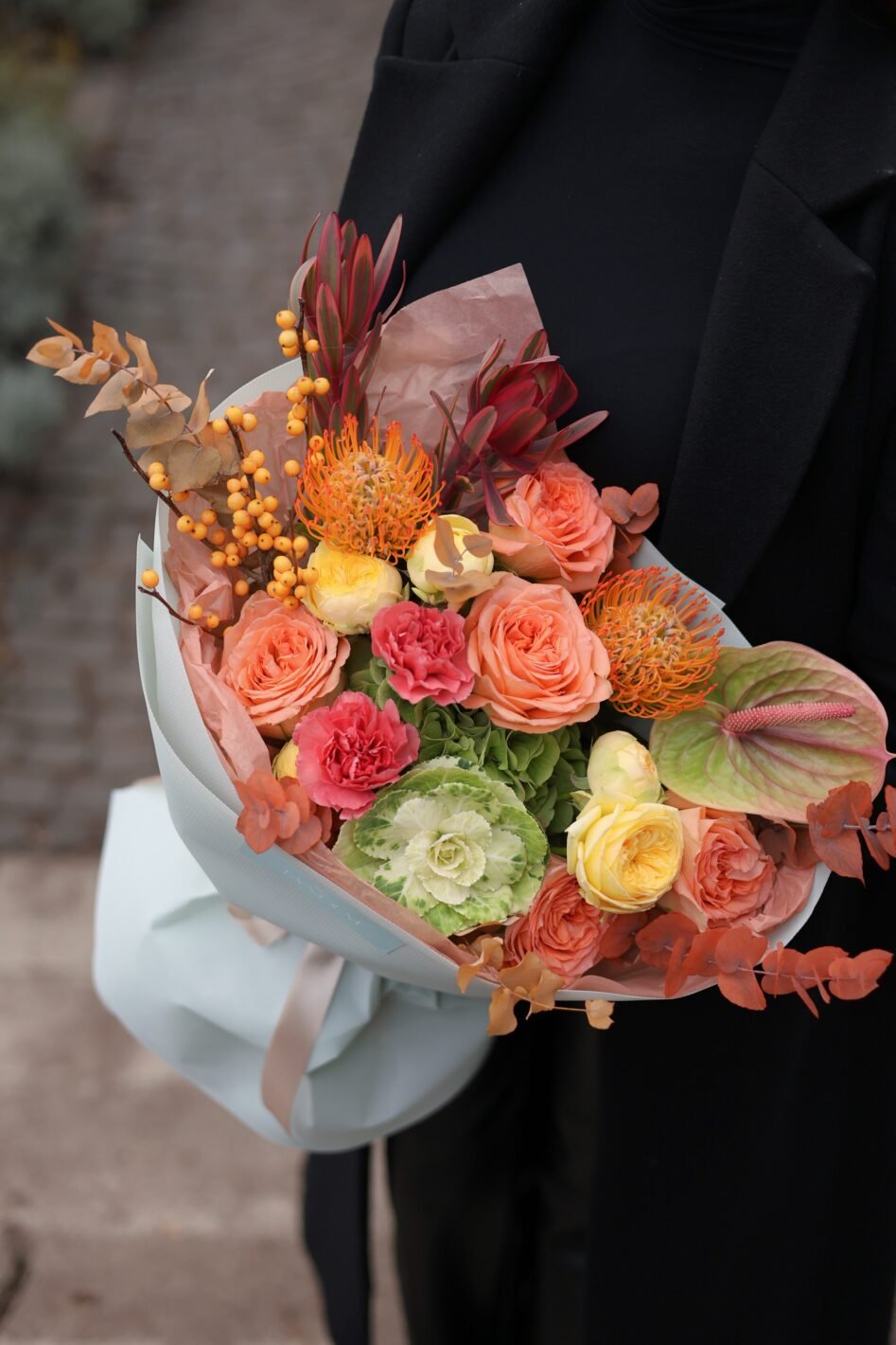 Яскравий осінній мікс з піоновидними трояндами